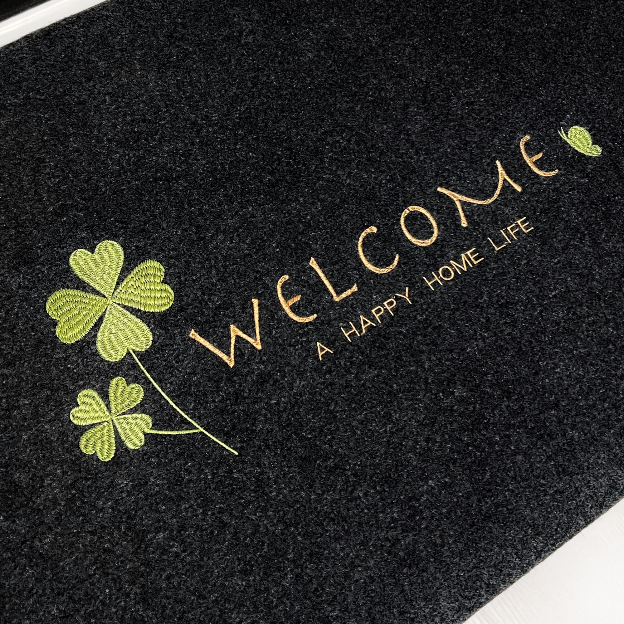 Коврик входной придверный красивый под дверь большой ворсовый влаго-грязезащитный 40х60 см ребристый черный с клевером welcome 40х60 см