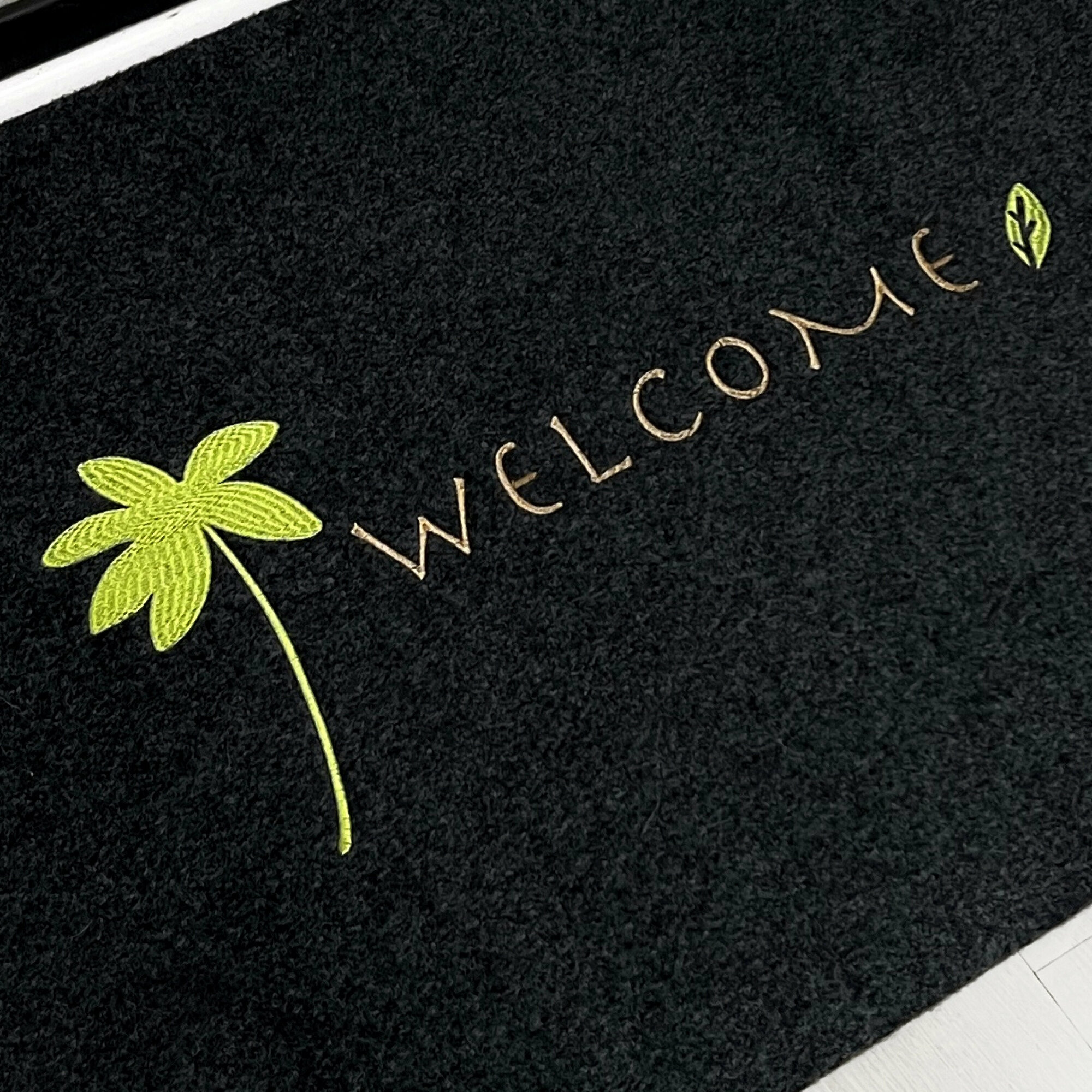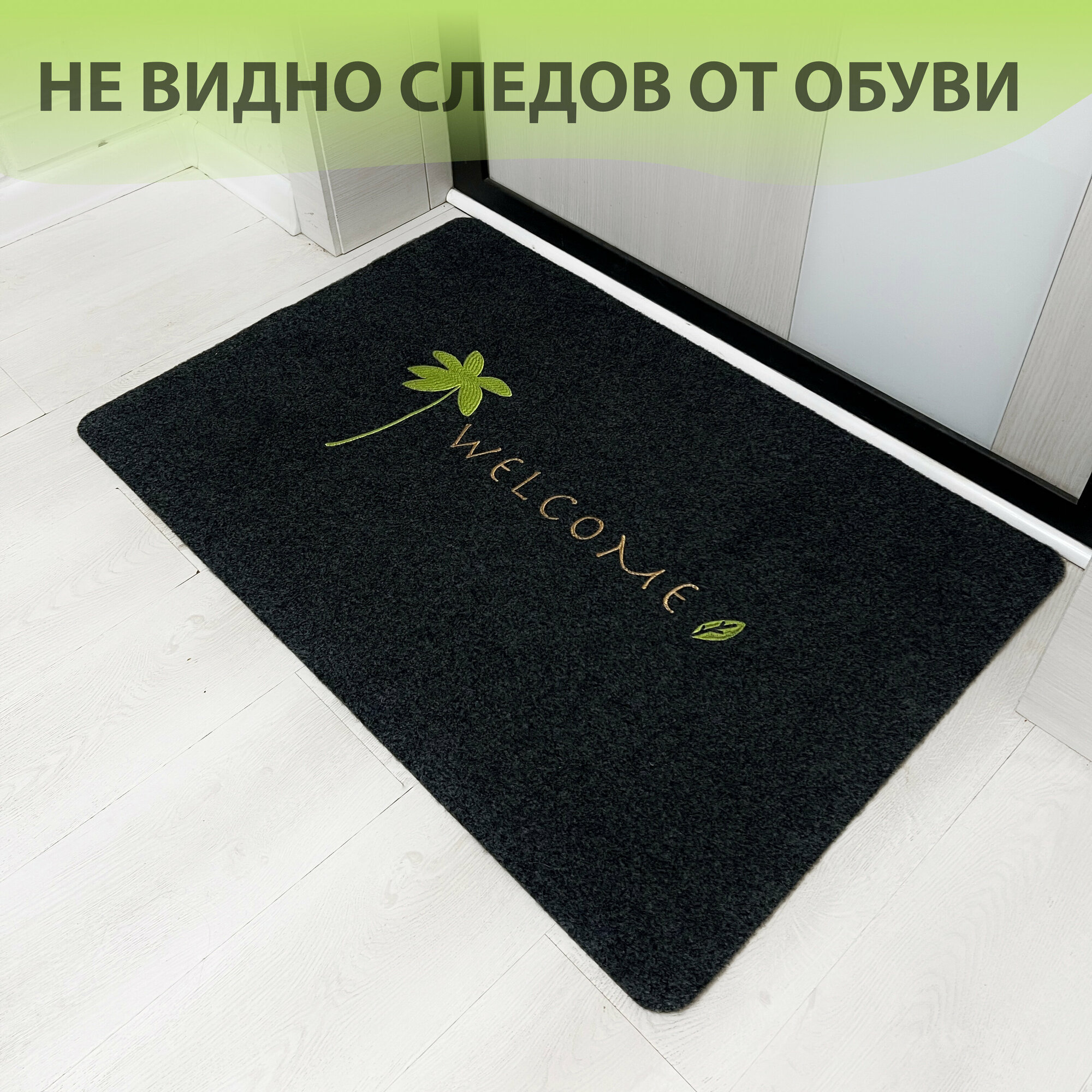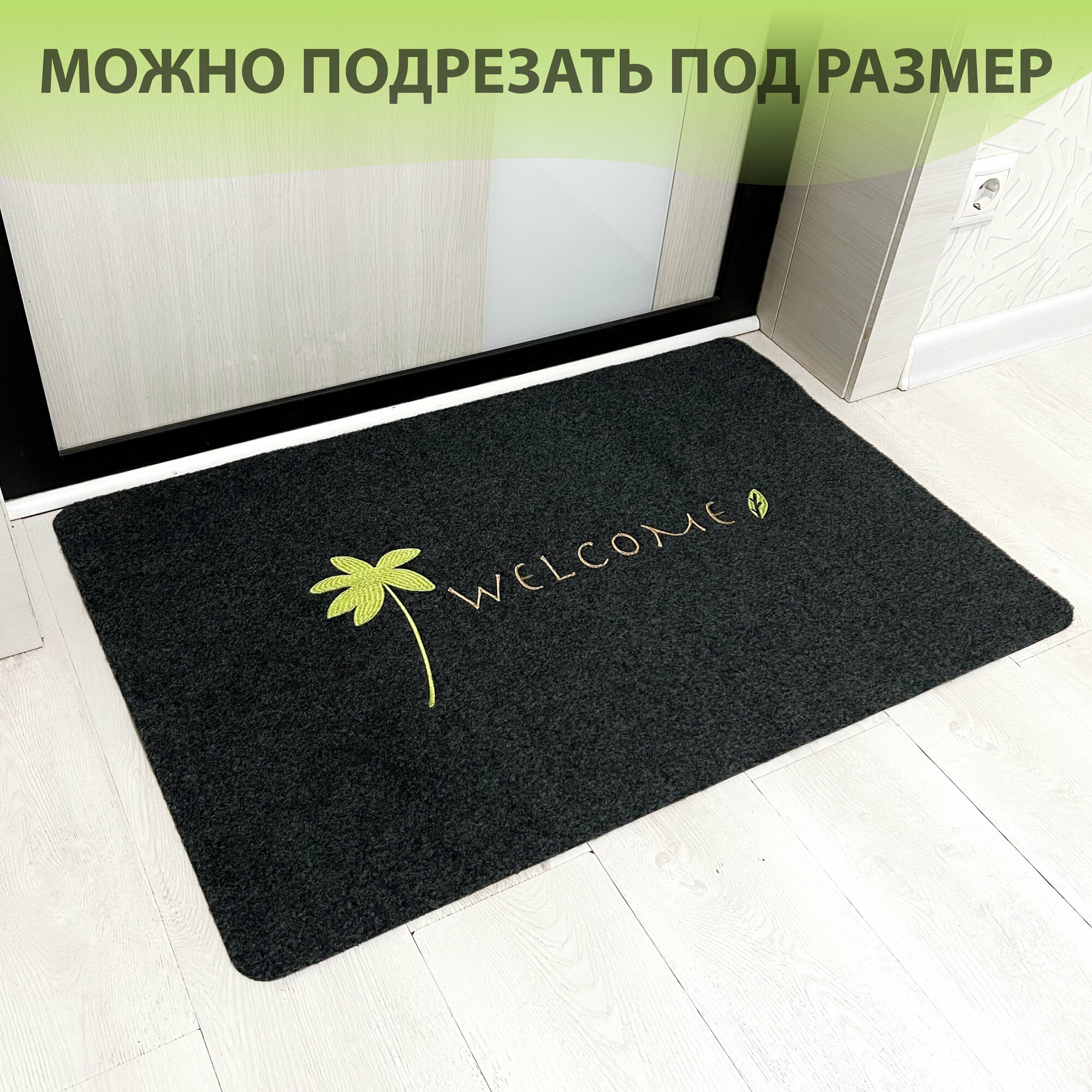 СохранитьКоврик входной придверный красивый под дверь ворсовый влаго-грязезащитный 80х120 см ребристый черный welcome с пальмой интересное: