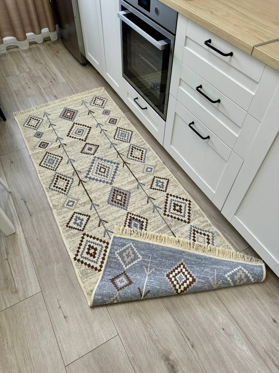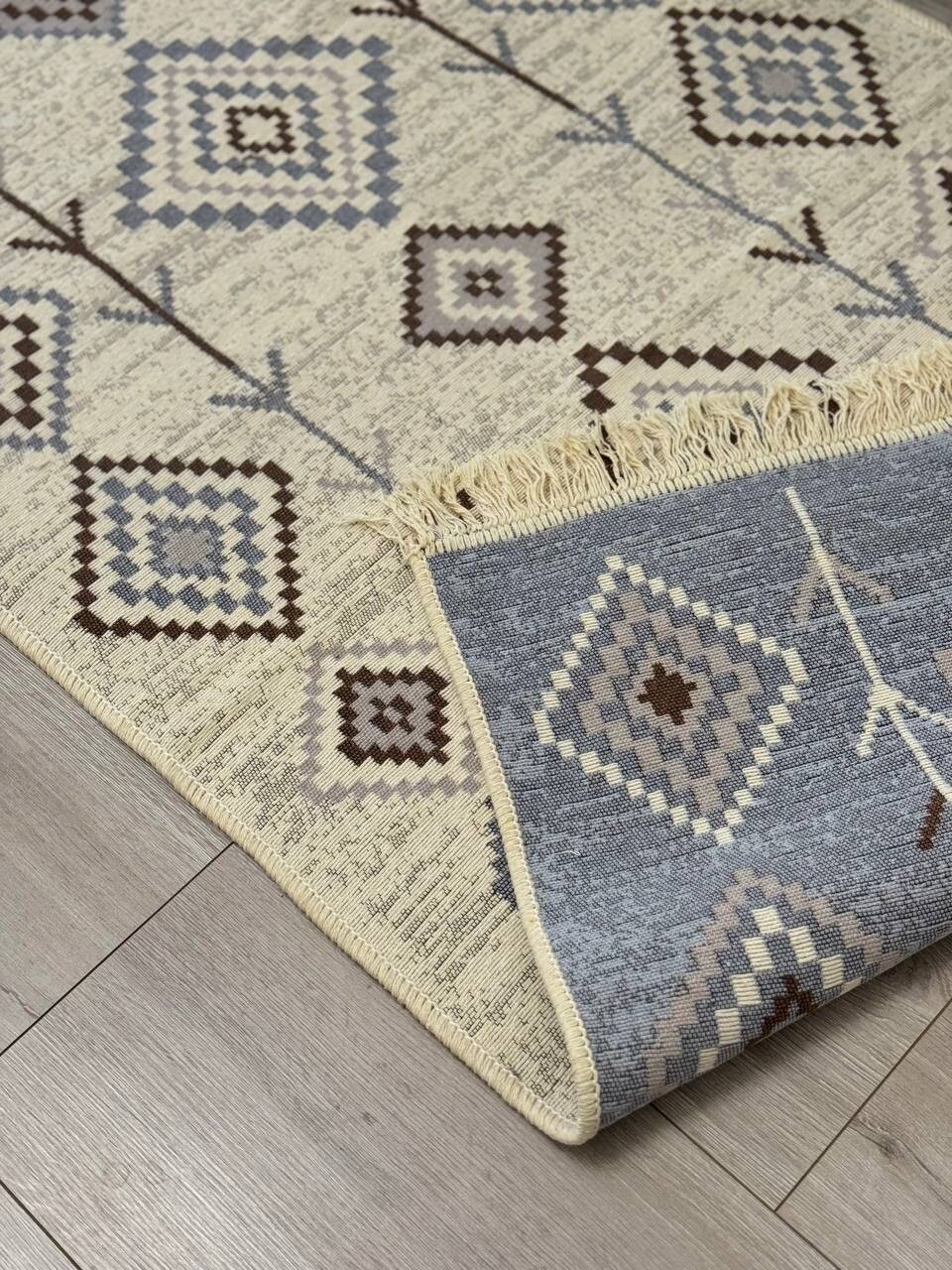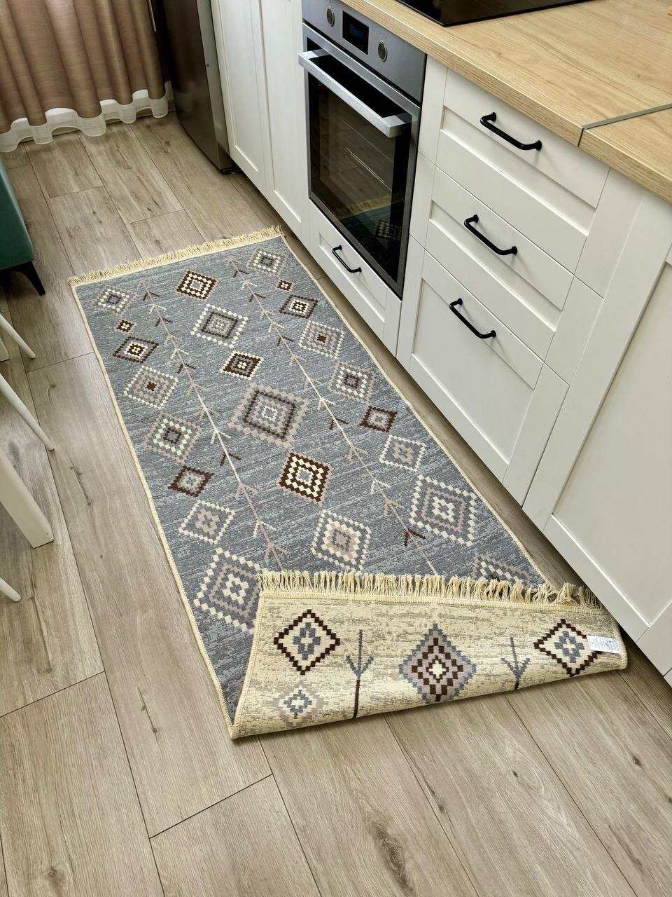 Турецкая ковровая дорожка 80 см на 200 см / двусторонний безворсовый ковер / серо-бежевый килим в прихожую Musafir Home интересное: