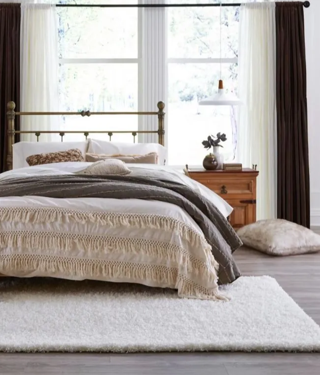Ковер на пол прямоугольный с длинным ворсом 42300 White 140x200 см; ковер комнатный; ковер в спальню;