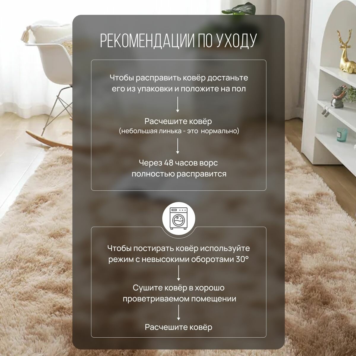 СохранитьКовер с длинным ворсом 80 х 160 см, бежевый, Edenvibe коврик комнатный, прикроватный, пушистый в комнату, спальню, гостиную, прихожую интересное: