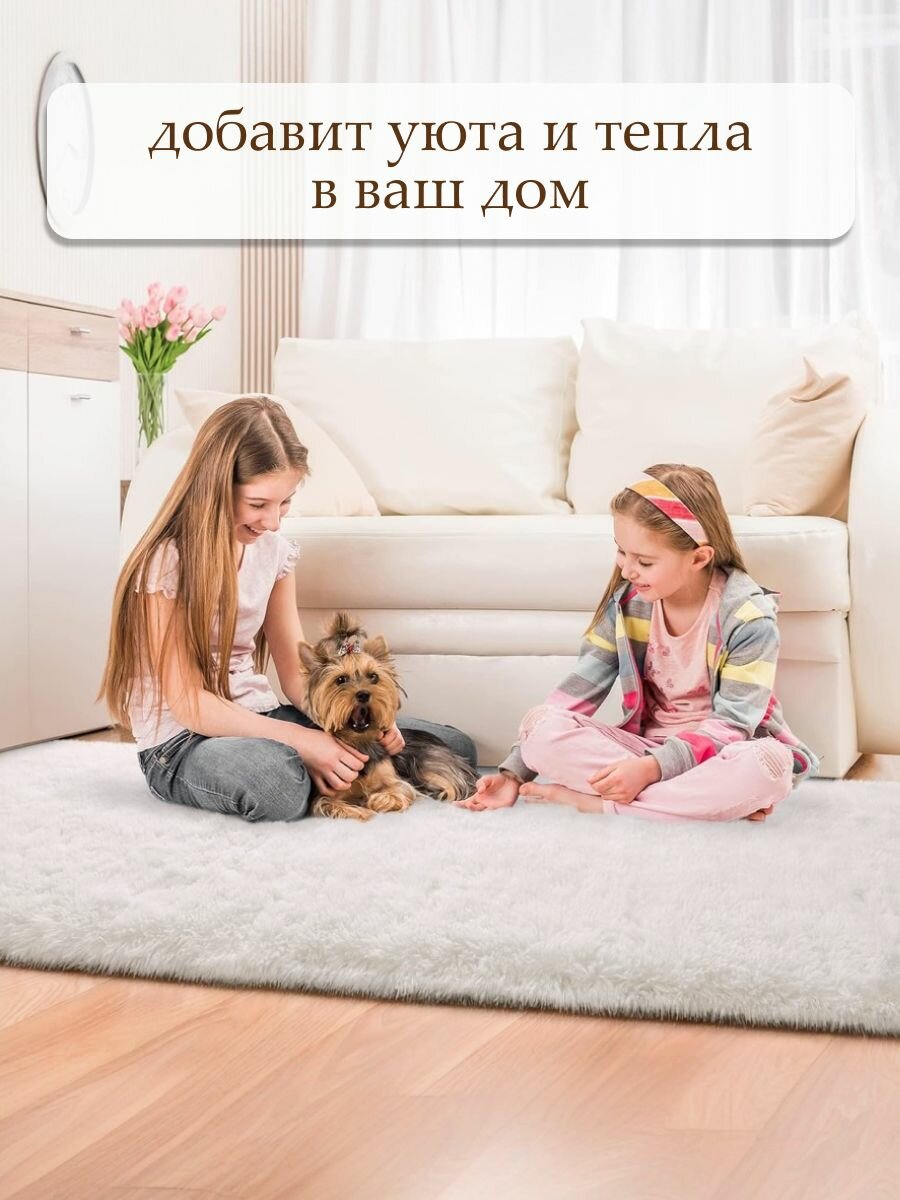 Купить Коврик меховой с длинным ворсом на пол 120х170 белый ковер комнатный, прикроватный, пушистый в комнату, спальню, гостиную, прихожую