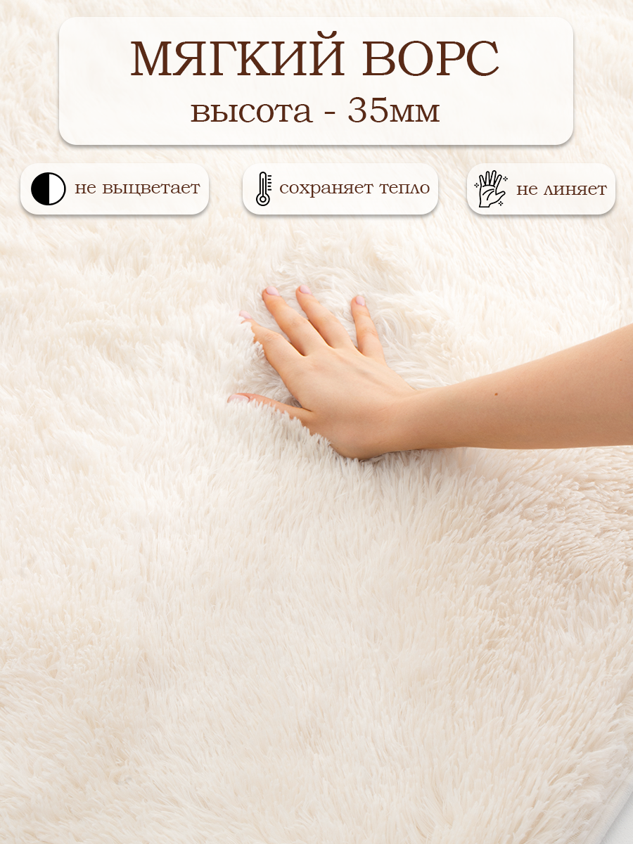 СохранитьКоврик меховой с длинным ворсом на пол 120х170 белый ковер комнатный, прикроватный, пушистый в комнату, спальню, гостиную, прихожую интересное:
