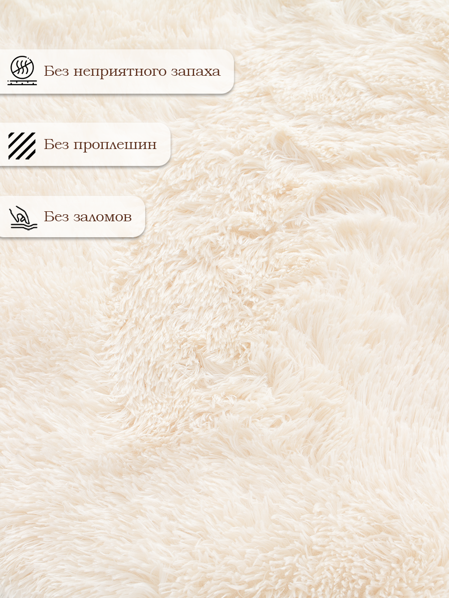 Ковер на пол с длинным ворсом 150х200 бежевый комнатный, прикроватный, пушистый в комнату, спальню, гостиную, прихожую