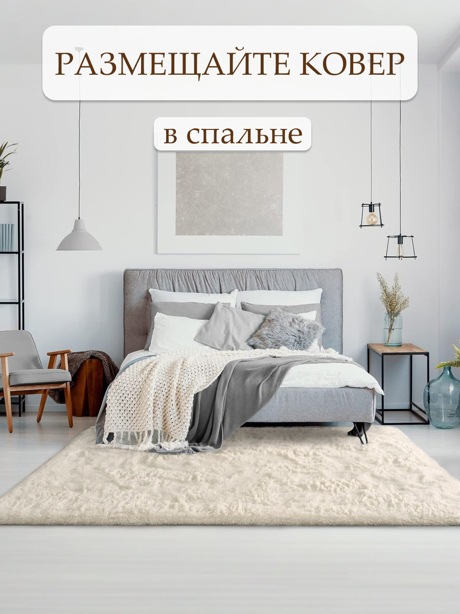 СохранитьКовер на пол с длинным ворсом 200х300 белый ковер комнатный, прикроватный, пушистый в комнату, спальню, гостиную, прихожую интересное: