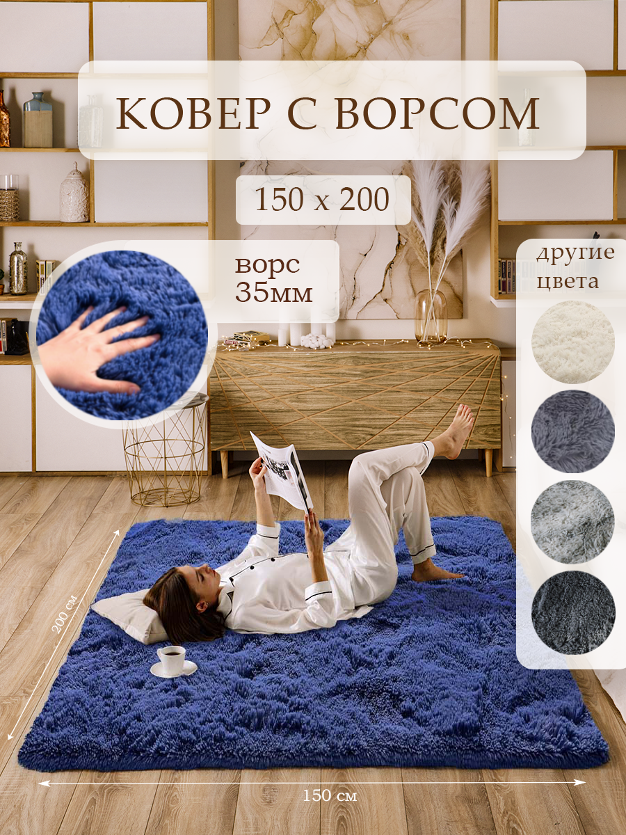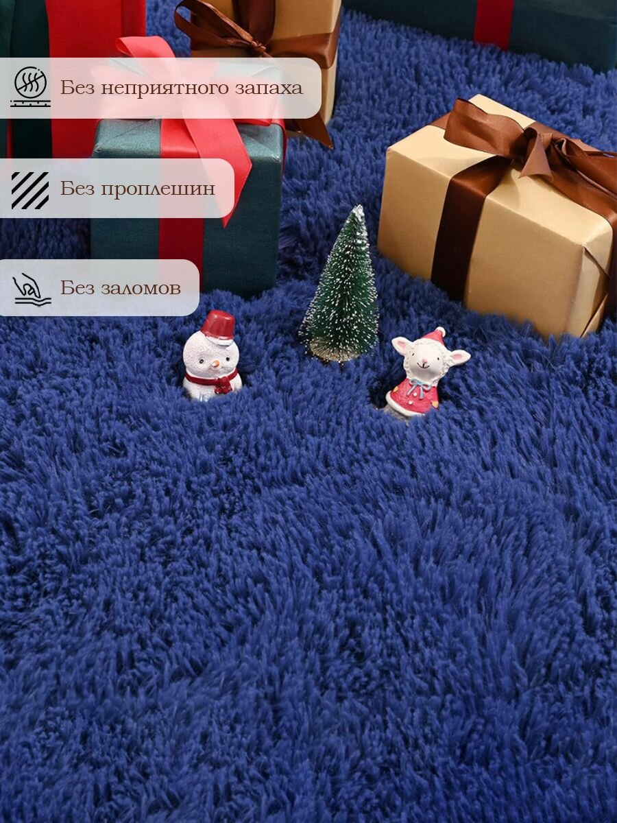 Купить Ковер на пол с длинным ворсом меховой 150х200 синий ковер комнатный, прикроватный, пушистый в комнату, спальню, гостиную, прихожую