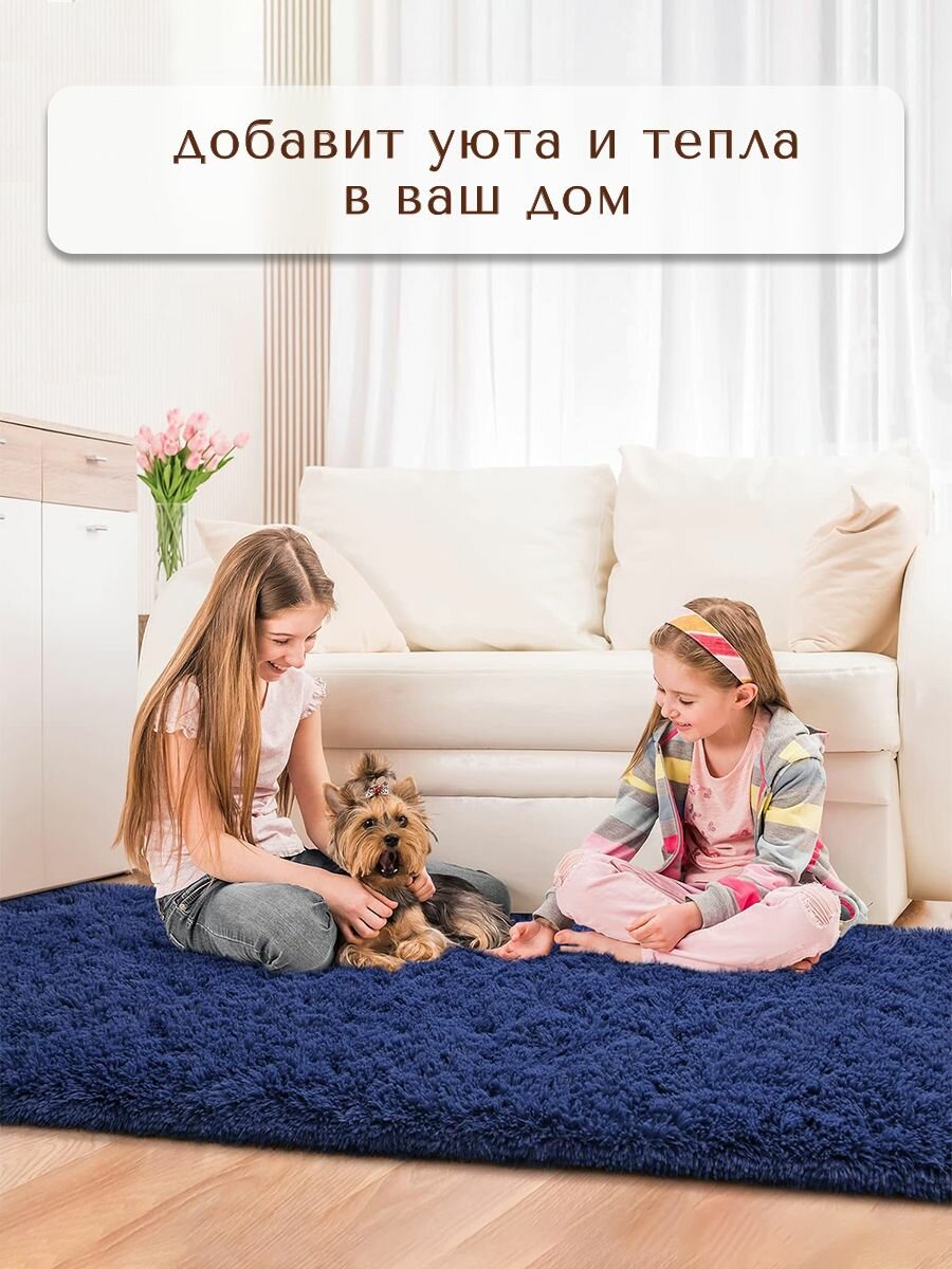 Ковер на пол с длинным ворсом меховой 120х170 синий ковер комнатный, прикроватный, пушистый в комнату, спальню, гостиную, прихожую