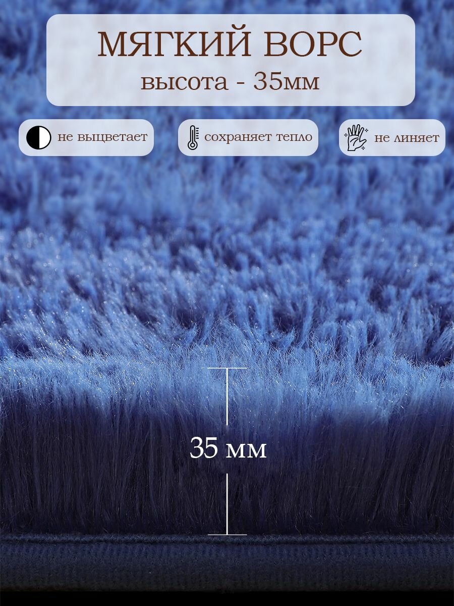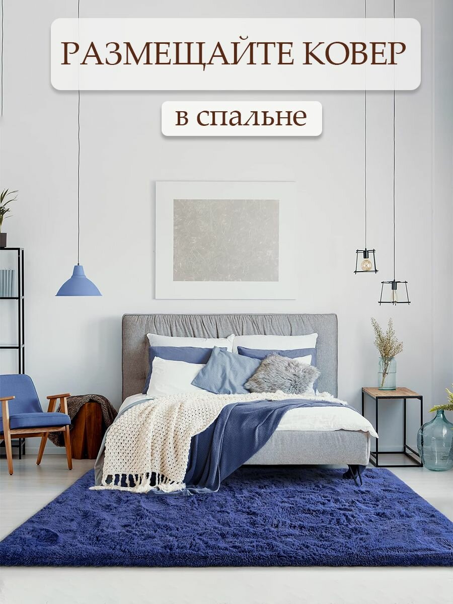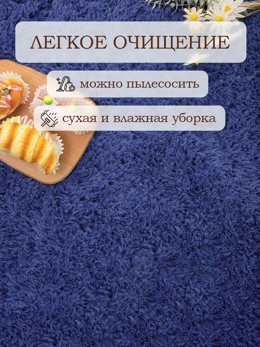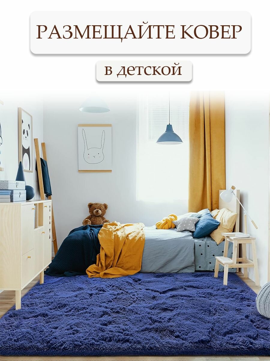 Ковер на пол с длинным ворсом меховой 150х200 синий ковер комнатный, прикроватный, пушистый в комнату, спальню, гостиную, прихожую