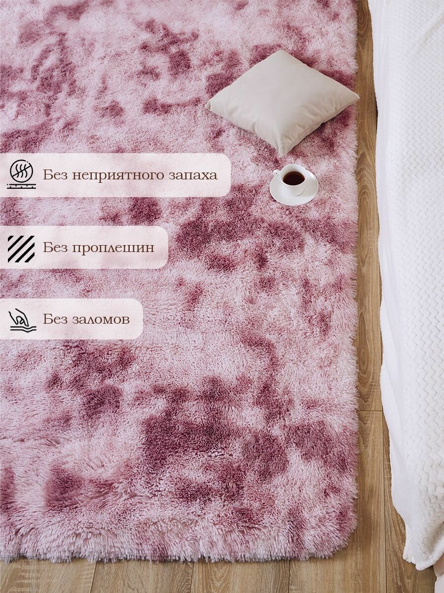 Купить Ковер на пол с длинным ворсом меховой 150х200 розовый ковер комнатный, прикроватный, пушистый в комнату, спальню, гостиную, прихожую