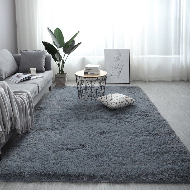 Ковер на пол с длинным ворсом 120x170 серый ковер комнатный, прикроватный, пушистый в комнату, спальню, гостиную, прихожую