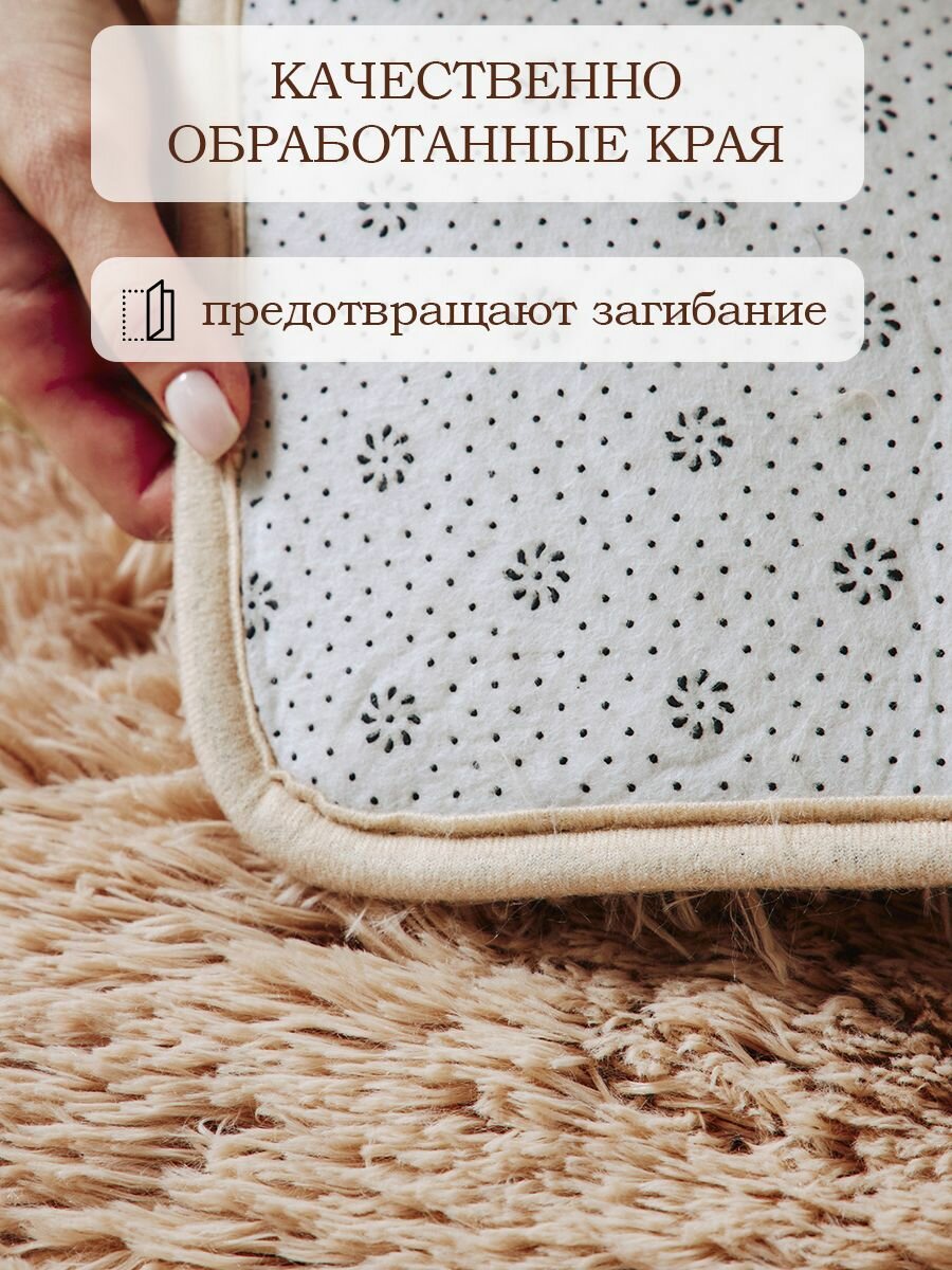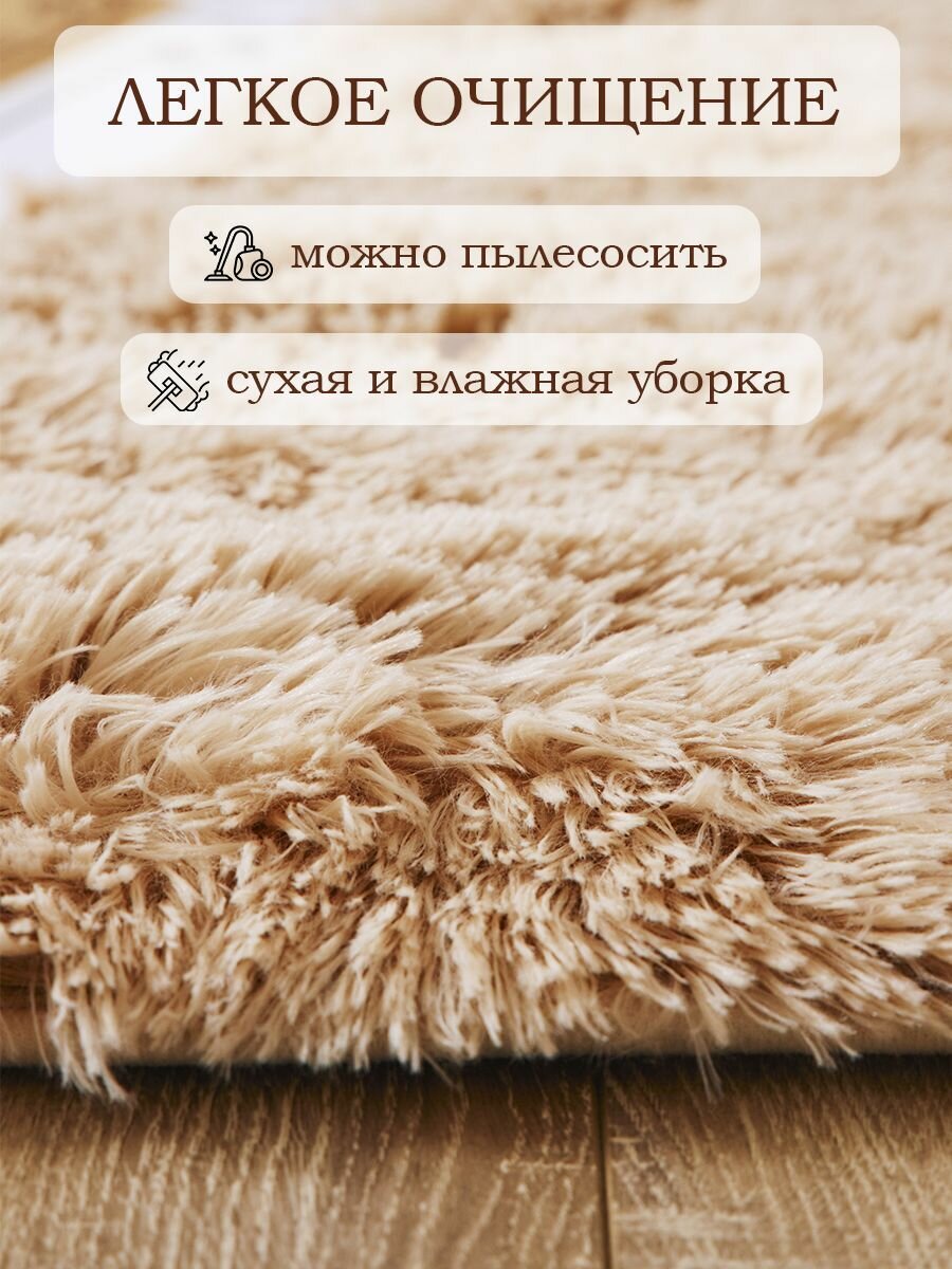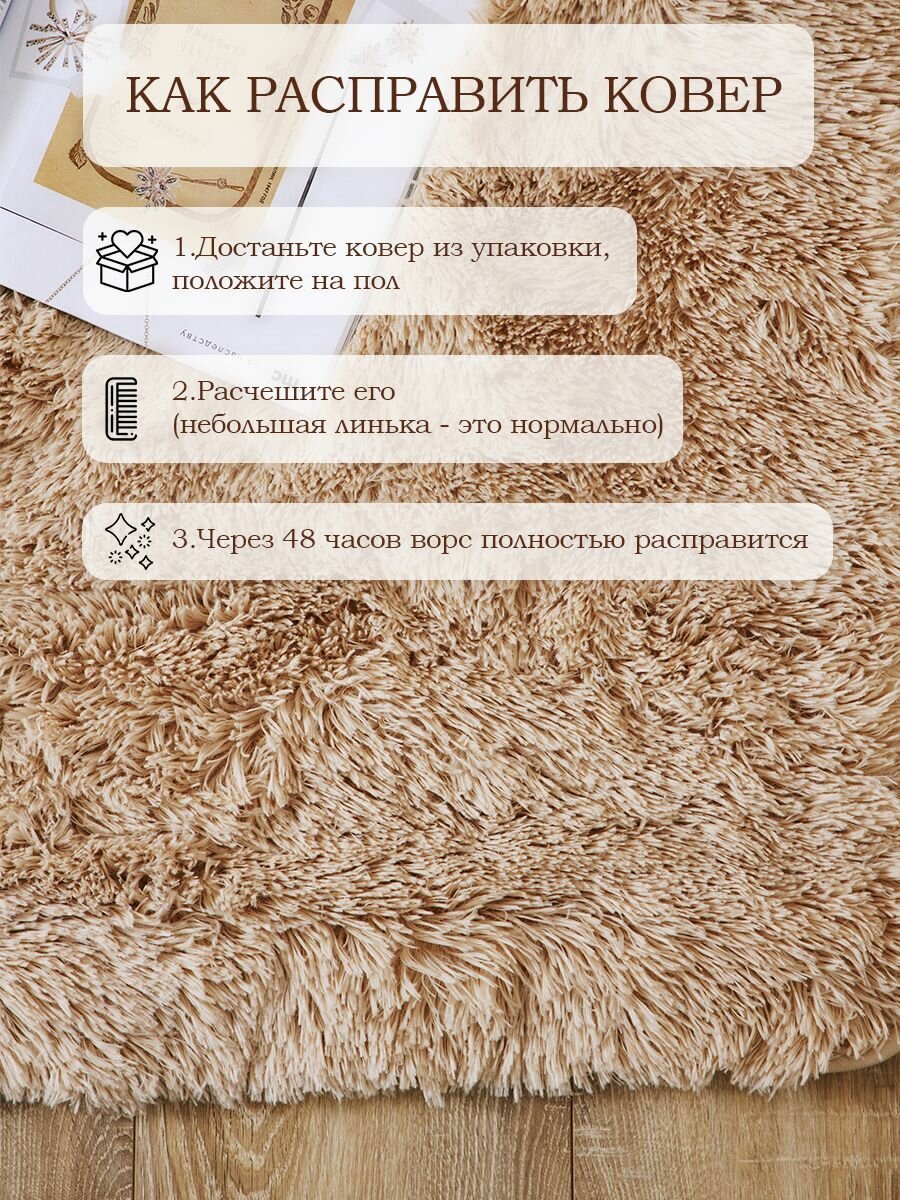 СохранитьКовер на пол с длинным ворсом 160x230 бежевый ковер комнатный, прикроватный, пушистый в комнату, спальню, гостиную, прихожую интересное: