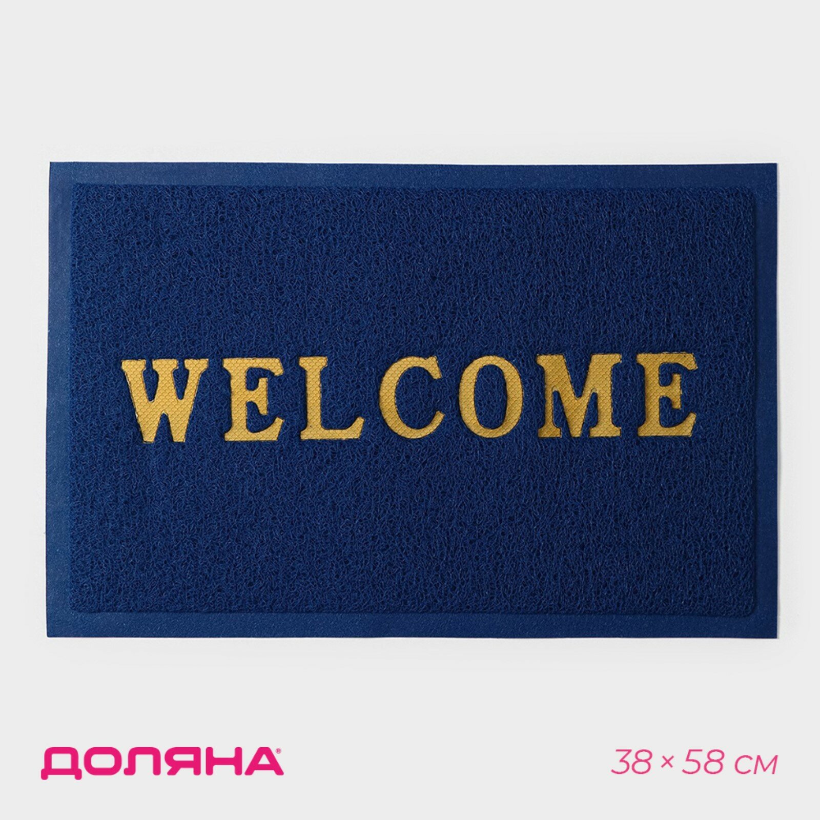 Купить Коврик придверный Доляна Welcome, с окантовкой 38×58 см, цвет синий