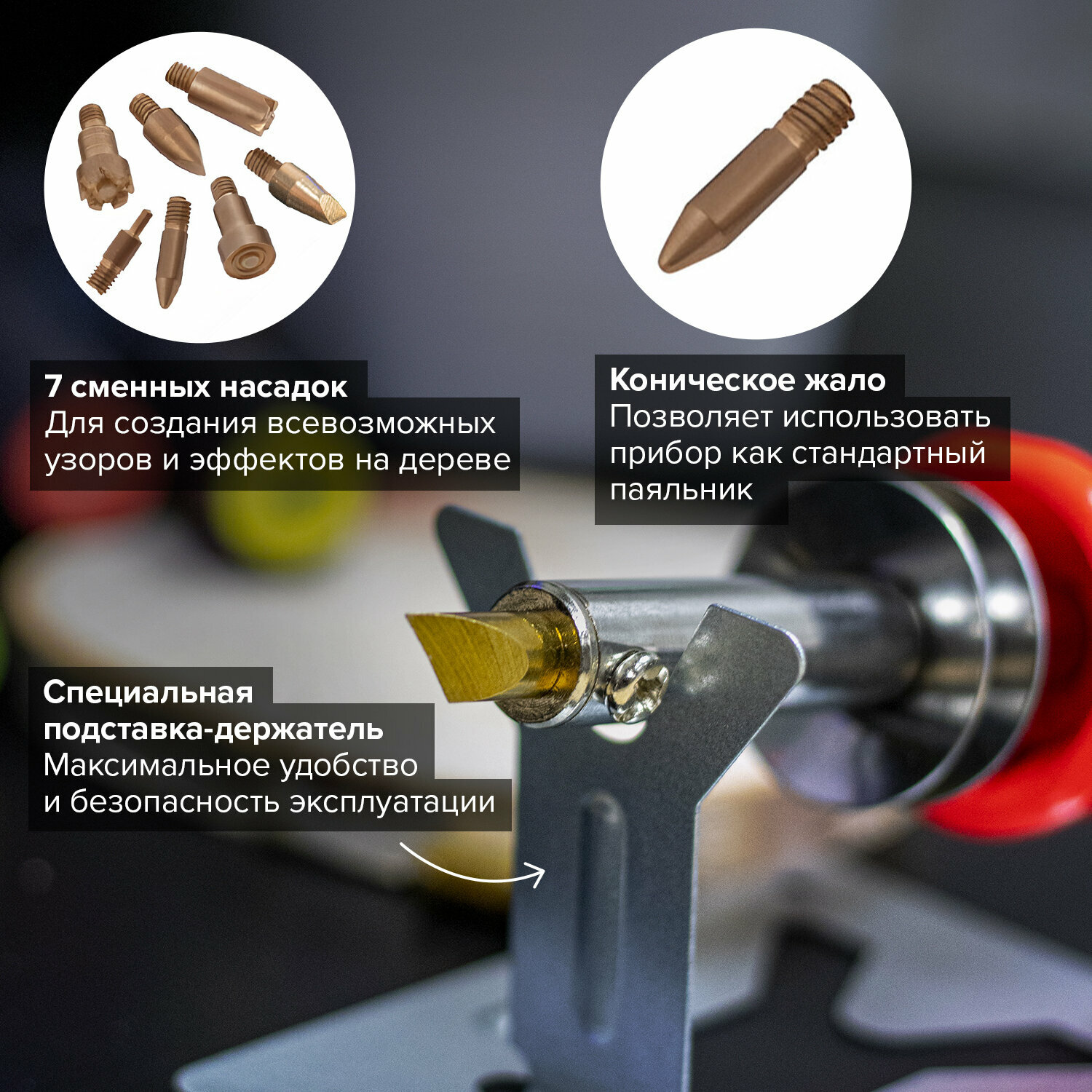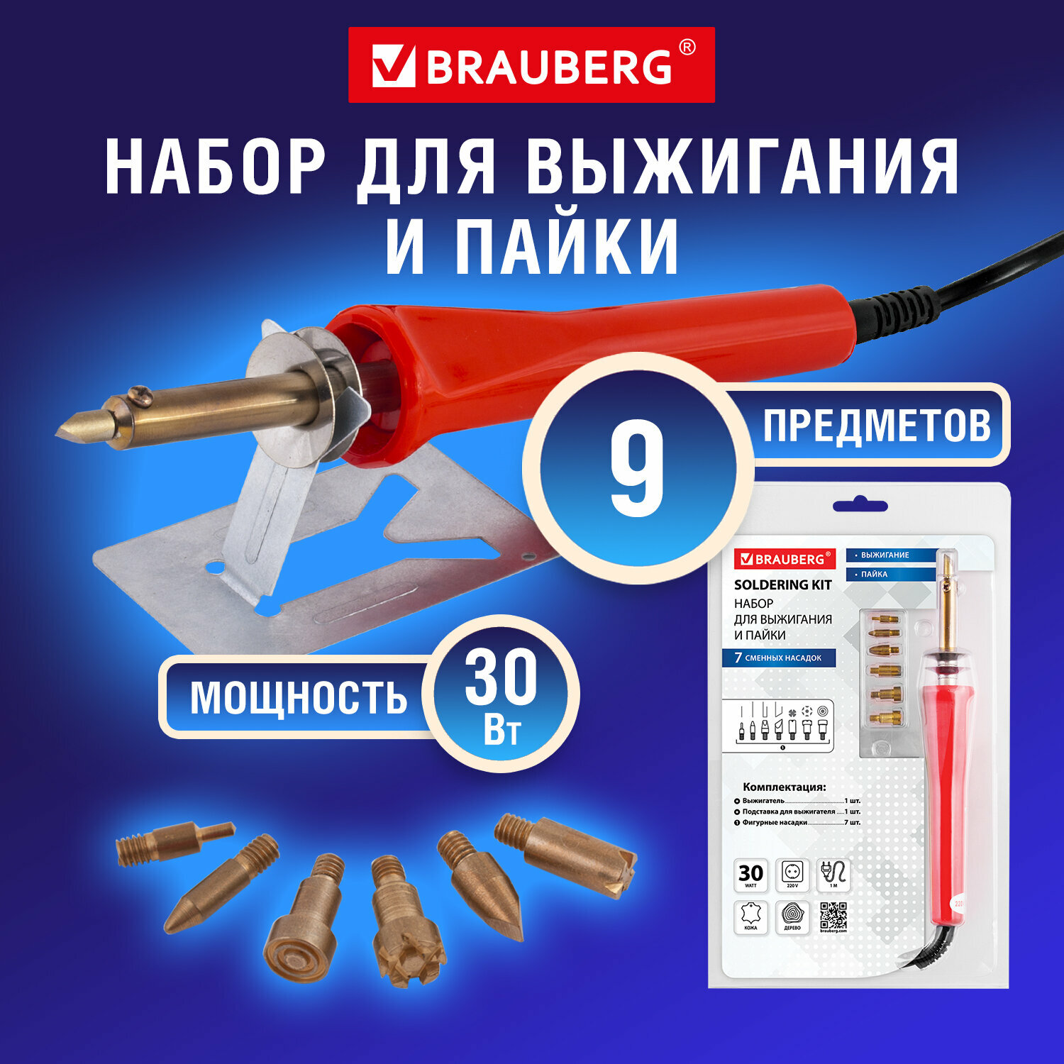 Набор для выжигания и пайки BRAUBERG, 7 насадок, красный, в блистере, 150620 интересное: