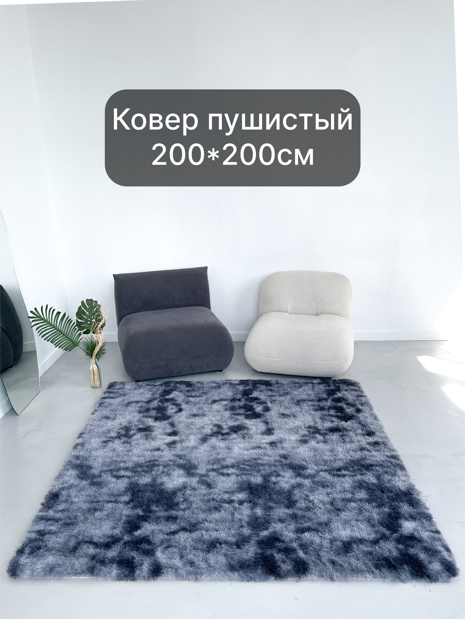 Ковер светло-серый пушистый с длинным ворсом, 200*200см , коврик в детскую, гостиную, спальню, игровую, ванную комнату, прикроватный коврик