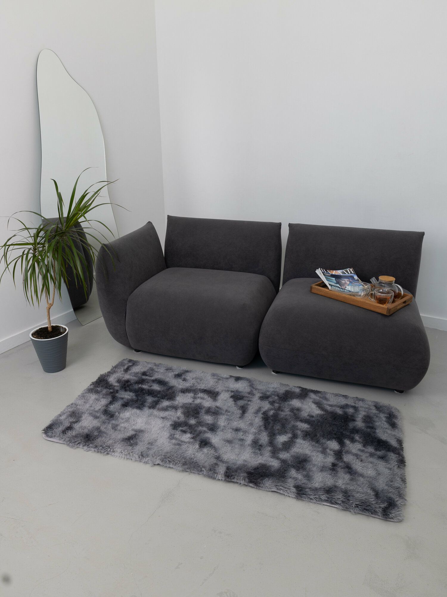 Ковер серо-черный пушистый с длинным ворсом, 100*200см , коврик в детскую, гостиную, спальню, игровую, ванную комнату, прикроватный коврик