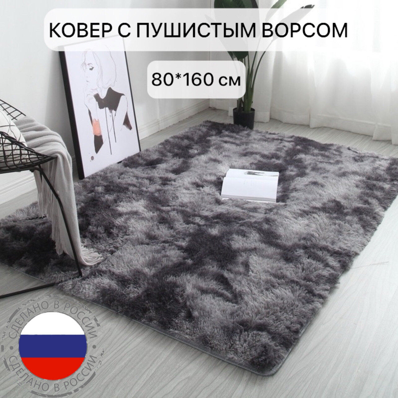 СохранитьКовер серо-черный пушистый с длинным ворсом, 80*160см, коврик в детскую, гостиную, спальню, игровую, ванную комнату, прикроватный коврик интересное: