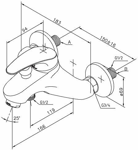 Смеситель для ванны и душа DAMIXA Lyra, хром (51100)