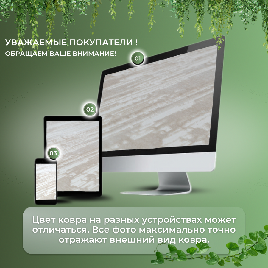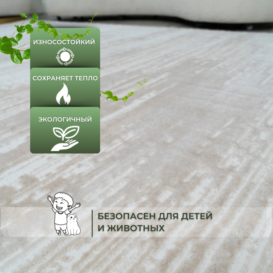 Ковер комнатный 200х300 с ворсом, ковер в гостиную, в спальню, в детскую, бежевый, Турция