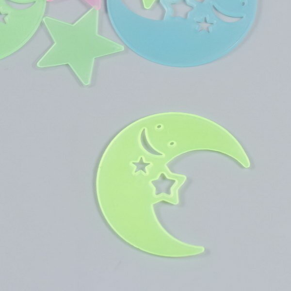 Купить Наклейка фосфорная пластик "Месяцы-смайлы и звёздочки" набор 35-40 шт 19х13 см