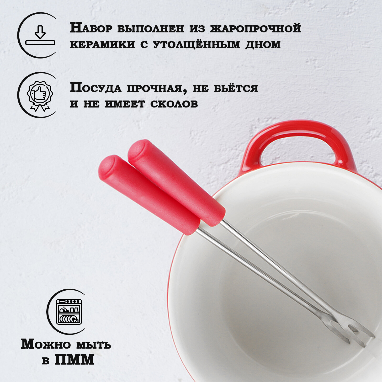 Набор для фондю «Лакомка», 4 предмета, цвет красный интересное:
