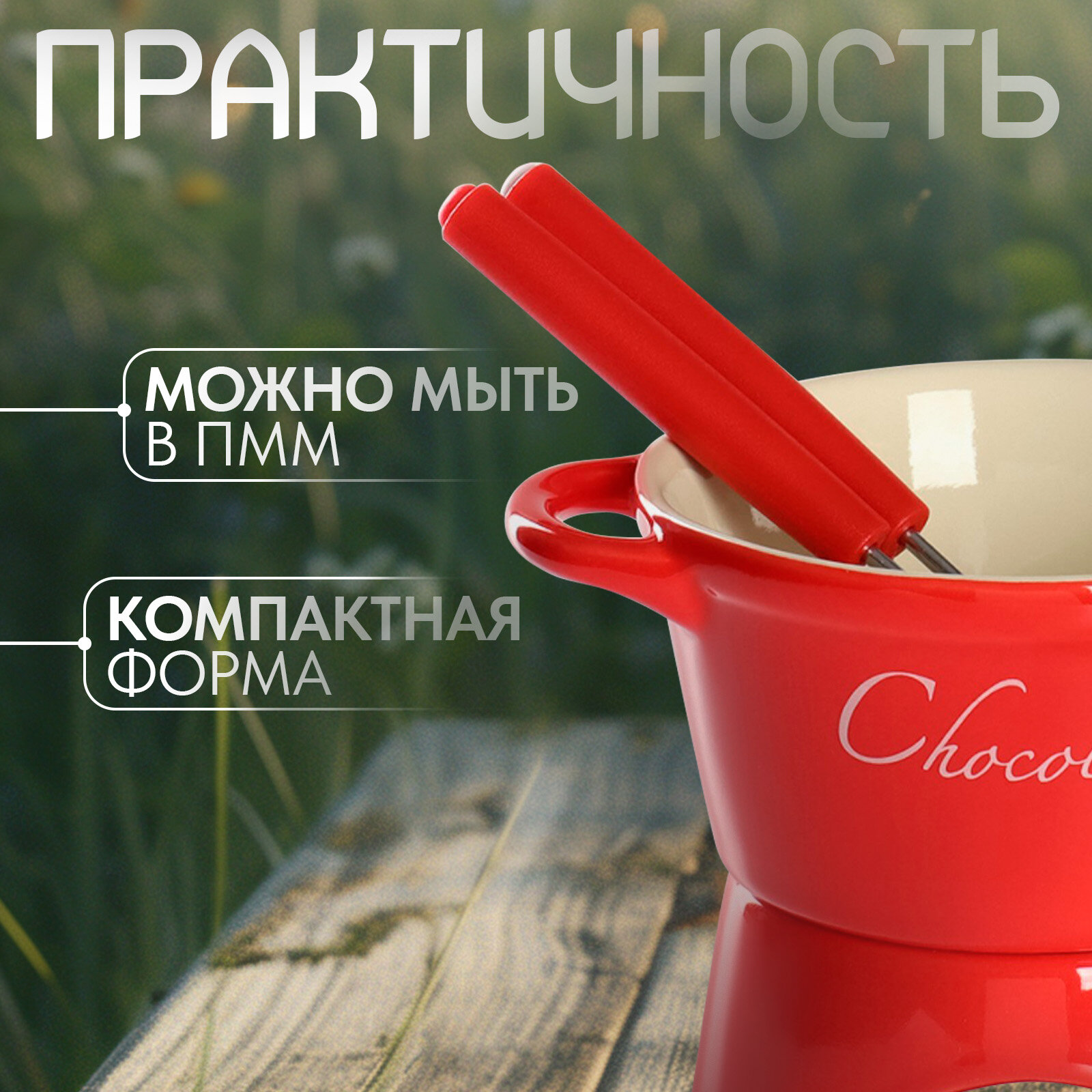 Купить Набор для фондю «Лакомка», 4 предмета, цвет красный