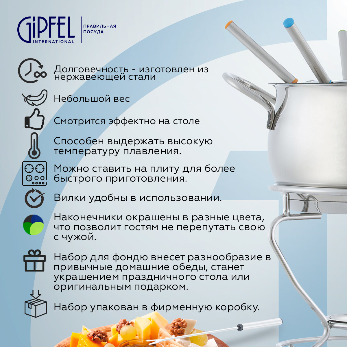 Набор для фондю Gipfel Gruyere 52435 9 предметов интересное: