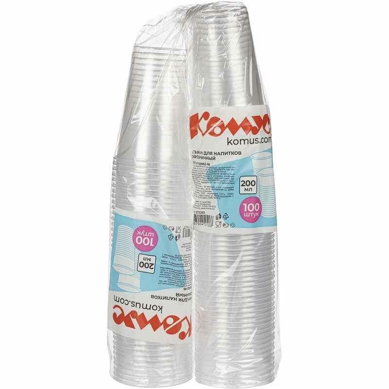 Стаканы одноразовые Комус пластиковые, 200 мл, 100 штук, белые