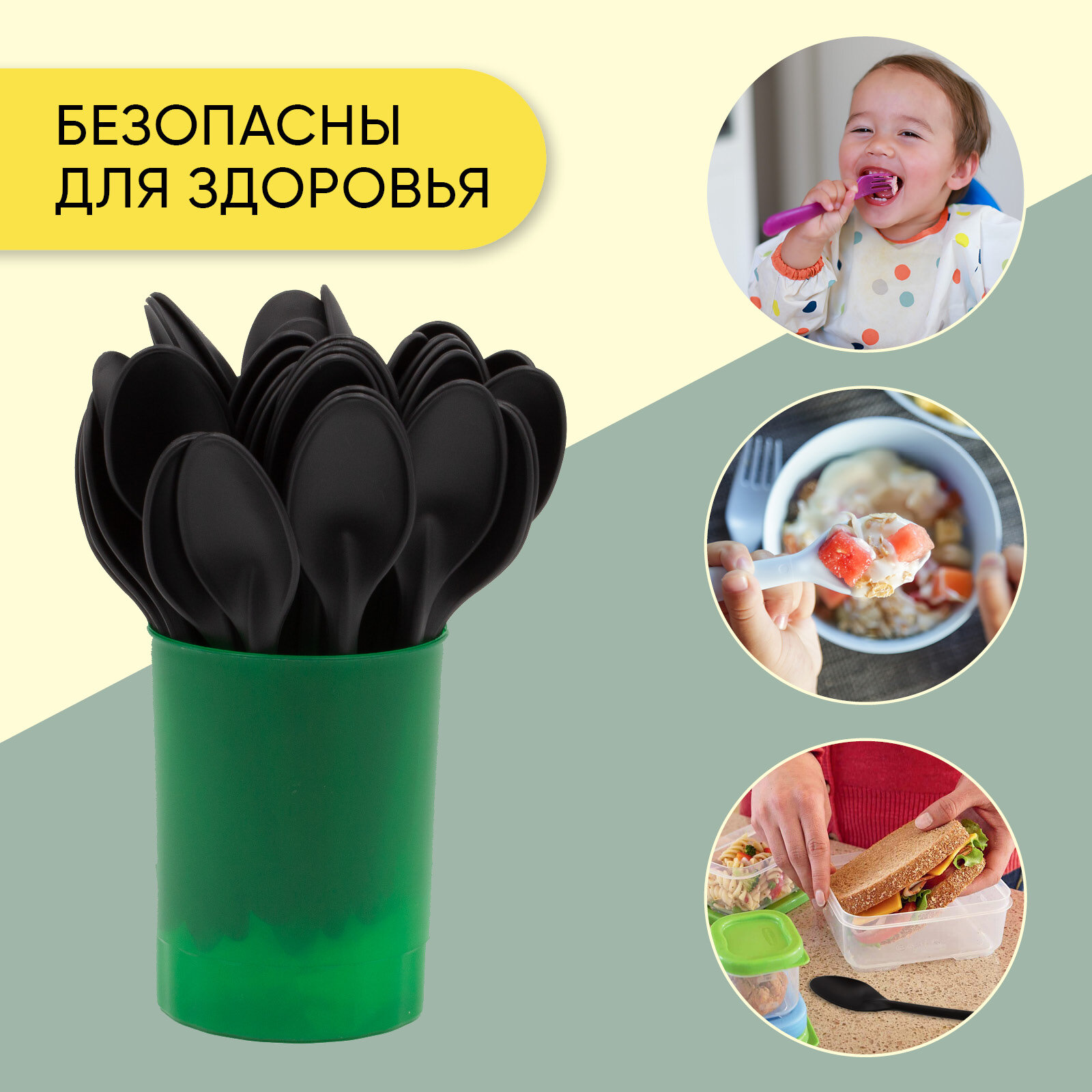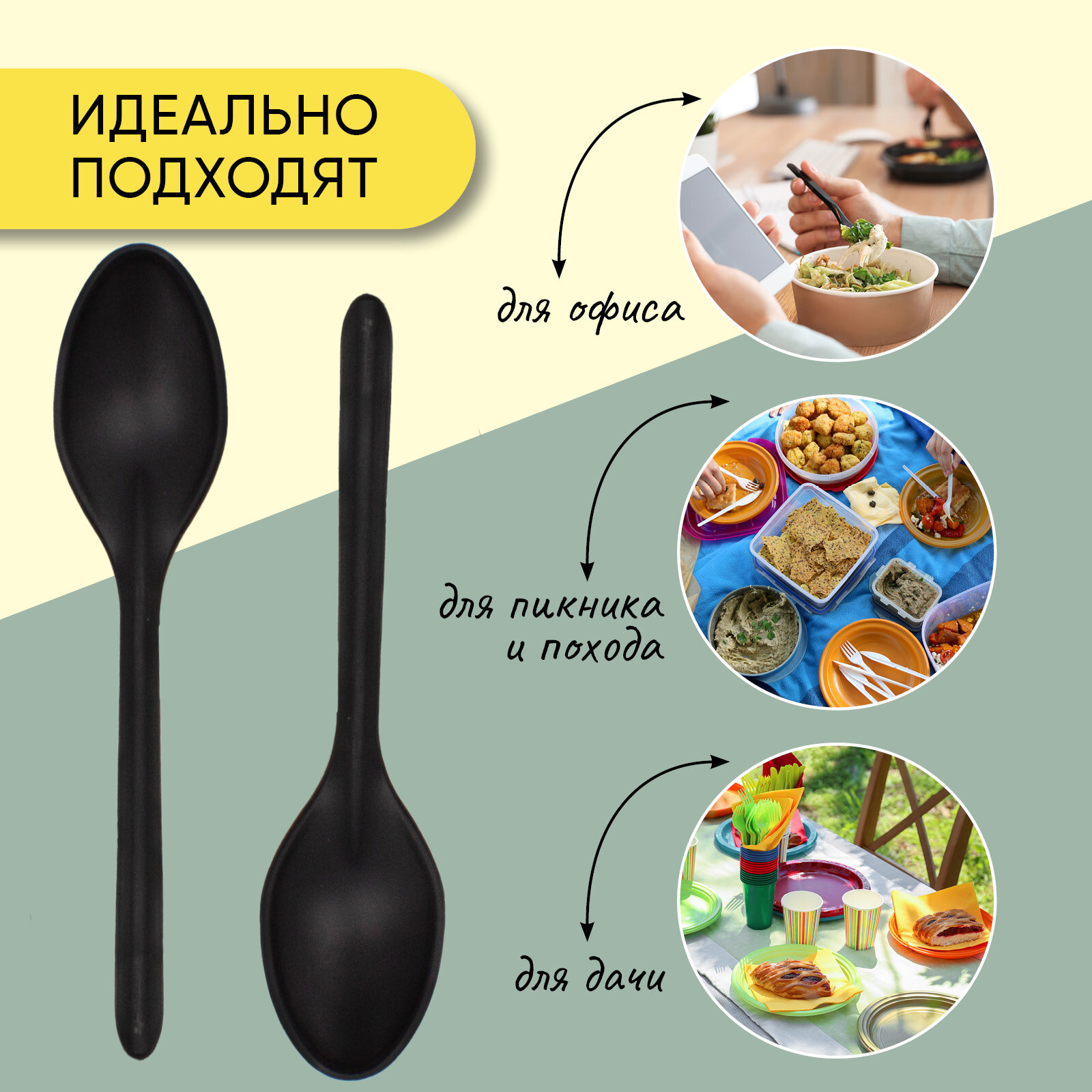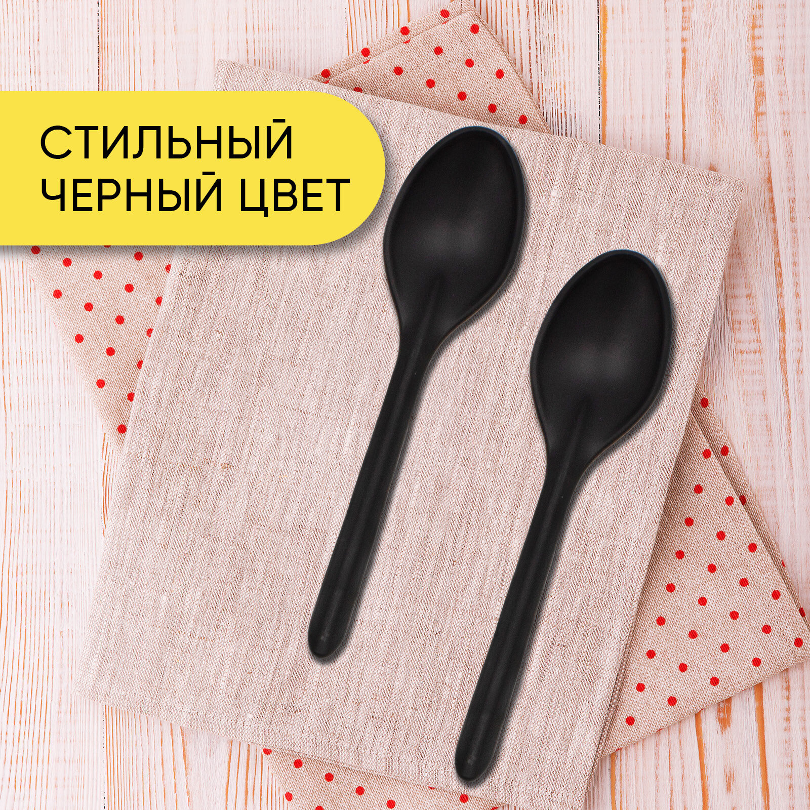 Ложка чайная одноразовая пластиковая 125 мм черная матовая, 50 штук Optiline интересное: