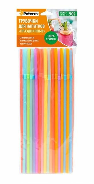 Трубочки для коктейлей "праздничные", разноцветные, с изгибом, 23 * 0,5 см, 50 шт. в упаковке , PATERRA (401-268) интересное: