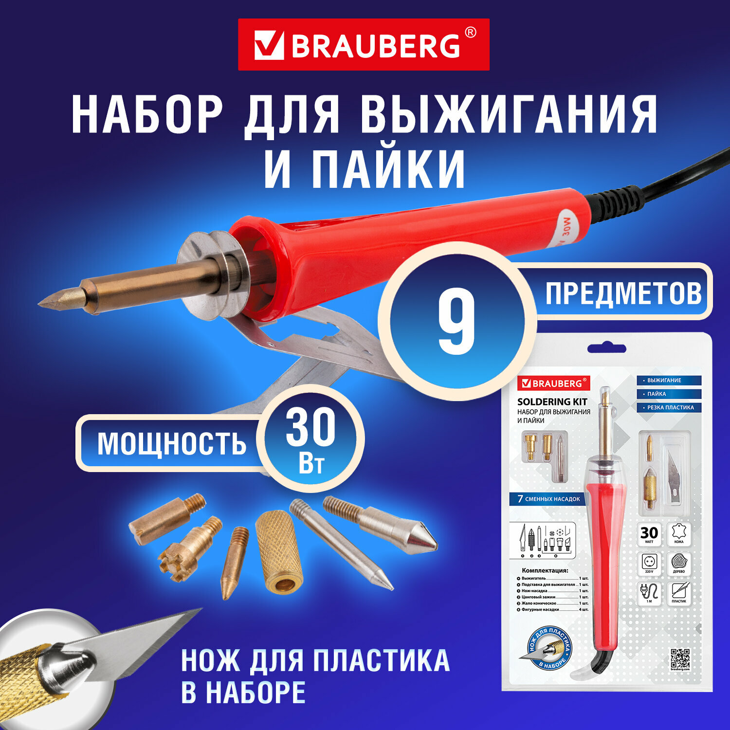 Набор для выжигания и пайки BRAUBERG, 6 насадок + нож для резки пластика, красный, в блистере,150621 интересное: