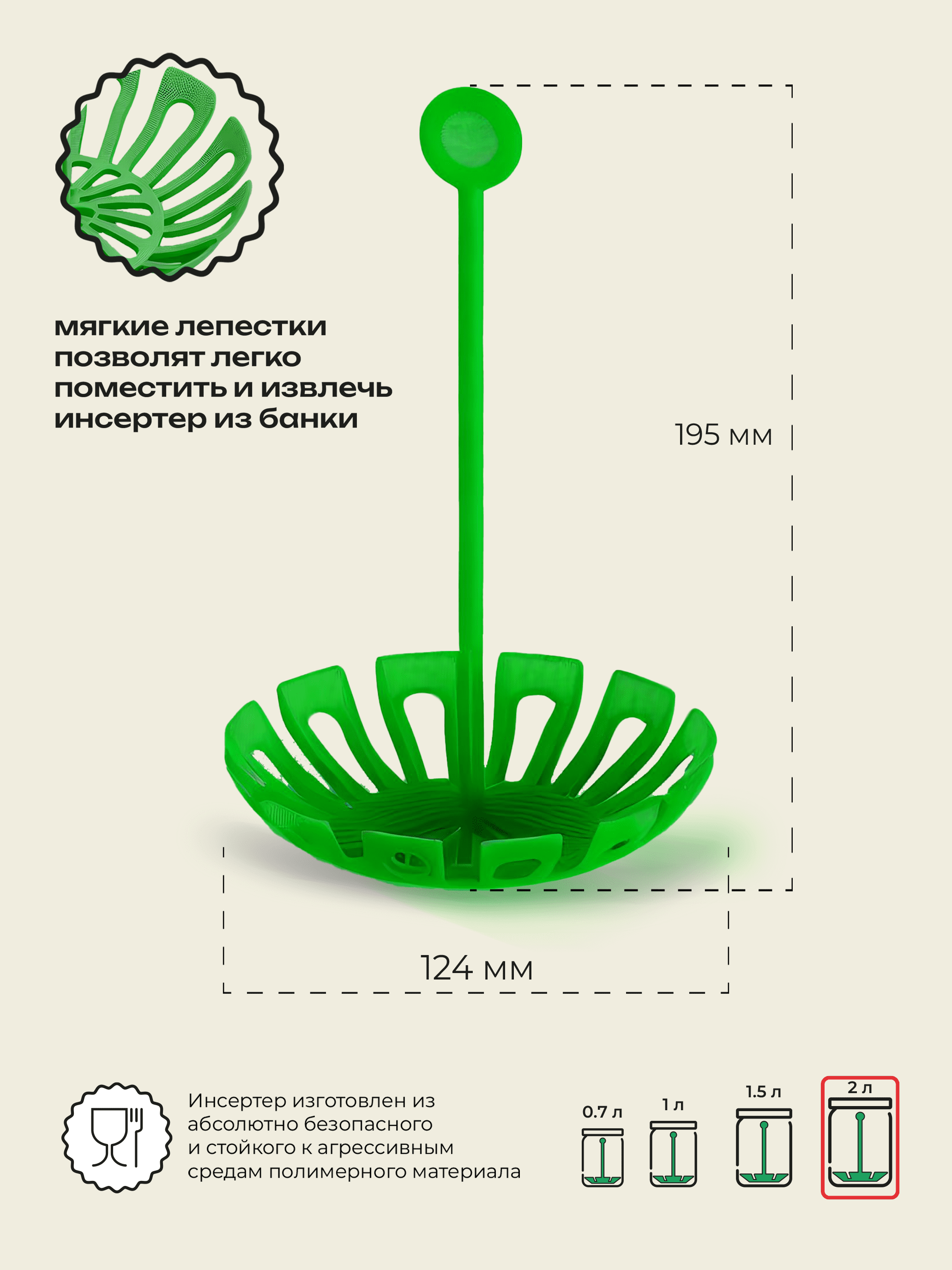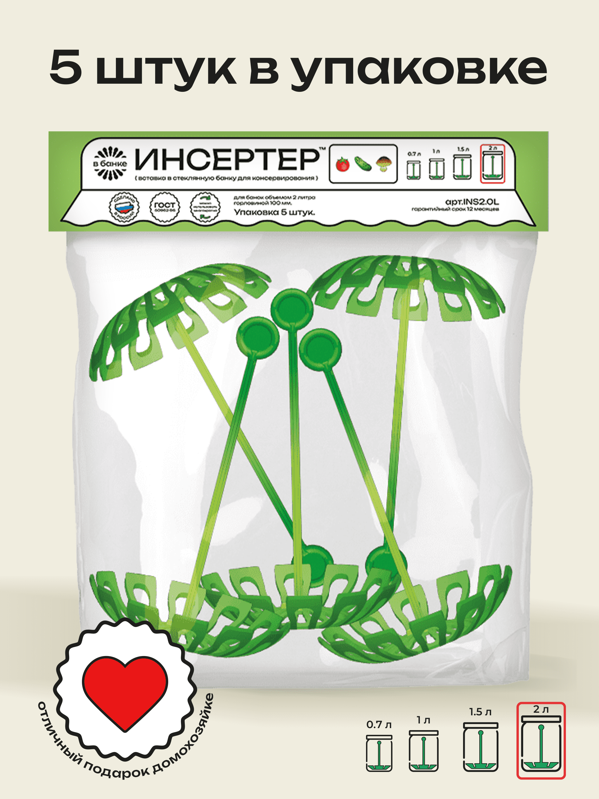 Инсертер ( вставка в стеклянную банку для консервирования) объемом 1,0 литр и горловиной 82 мм. и 100 мм. Упаковка 5 штук.