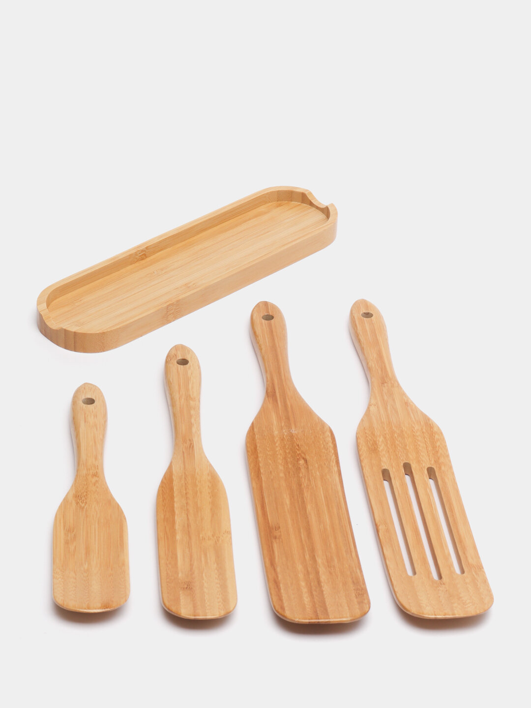 Купить Набор лопаток для кухни Kitchen Muse KM-BBS / Лопатки кухонные из бамбука на подставке / Кухонные принадлежности из дерева