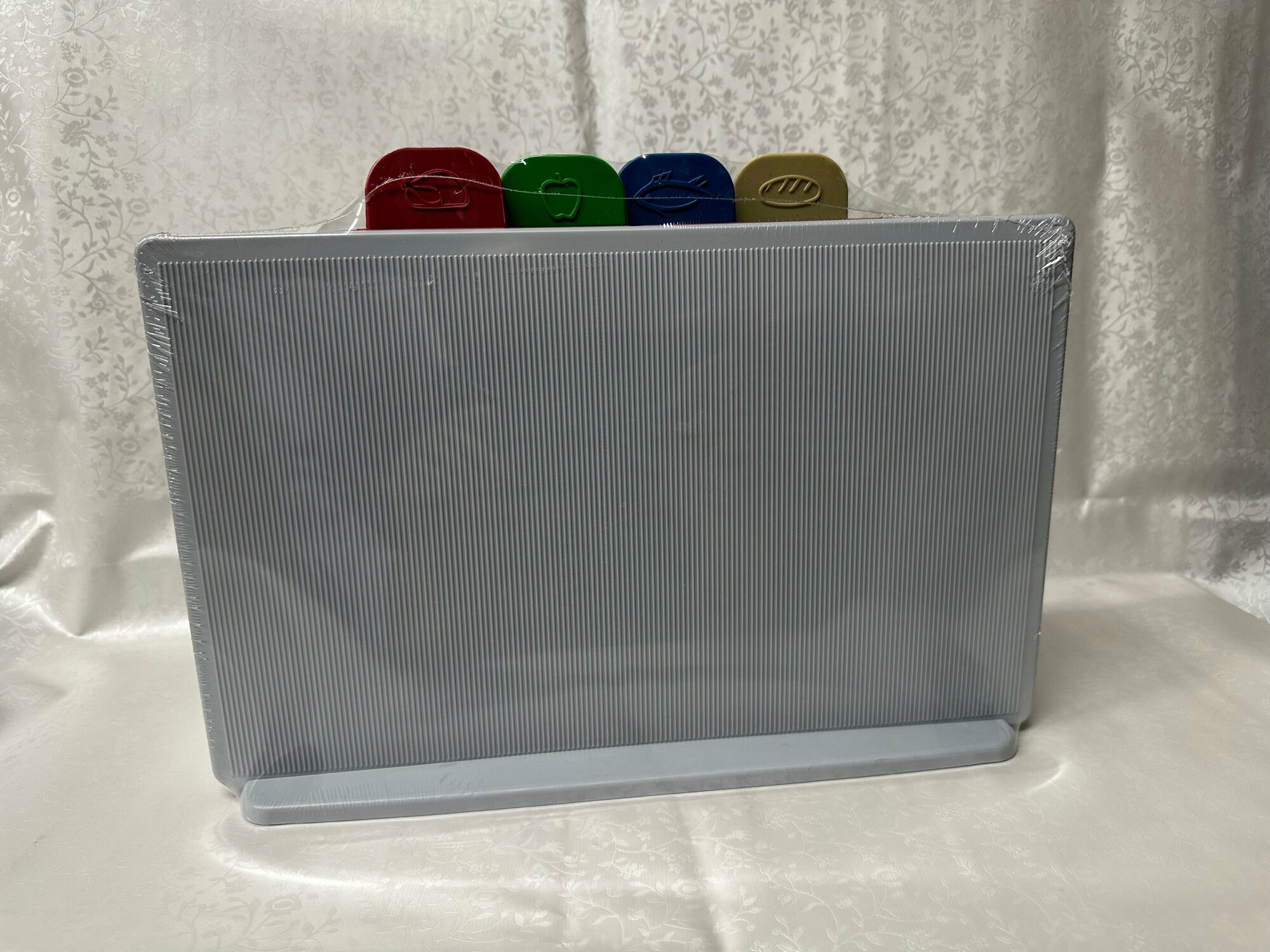 Набор разделочных досок, пластик, с подставкой, серый (4 шт.)