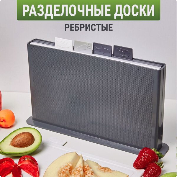 Набор разделочных досок, пластик, с подставкой, серый (4 шт.)