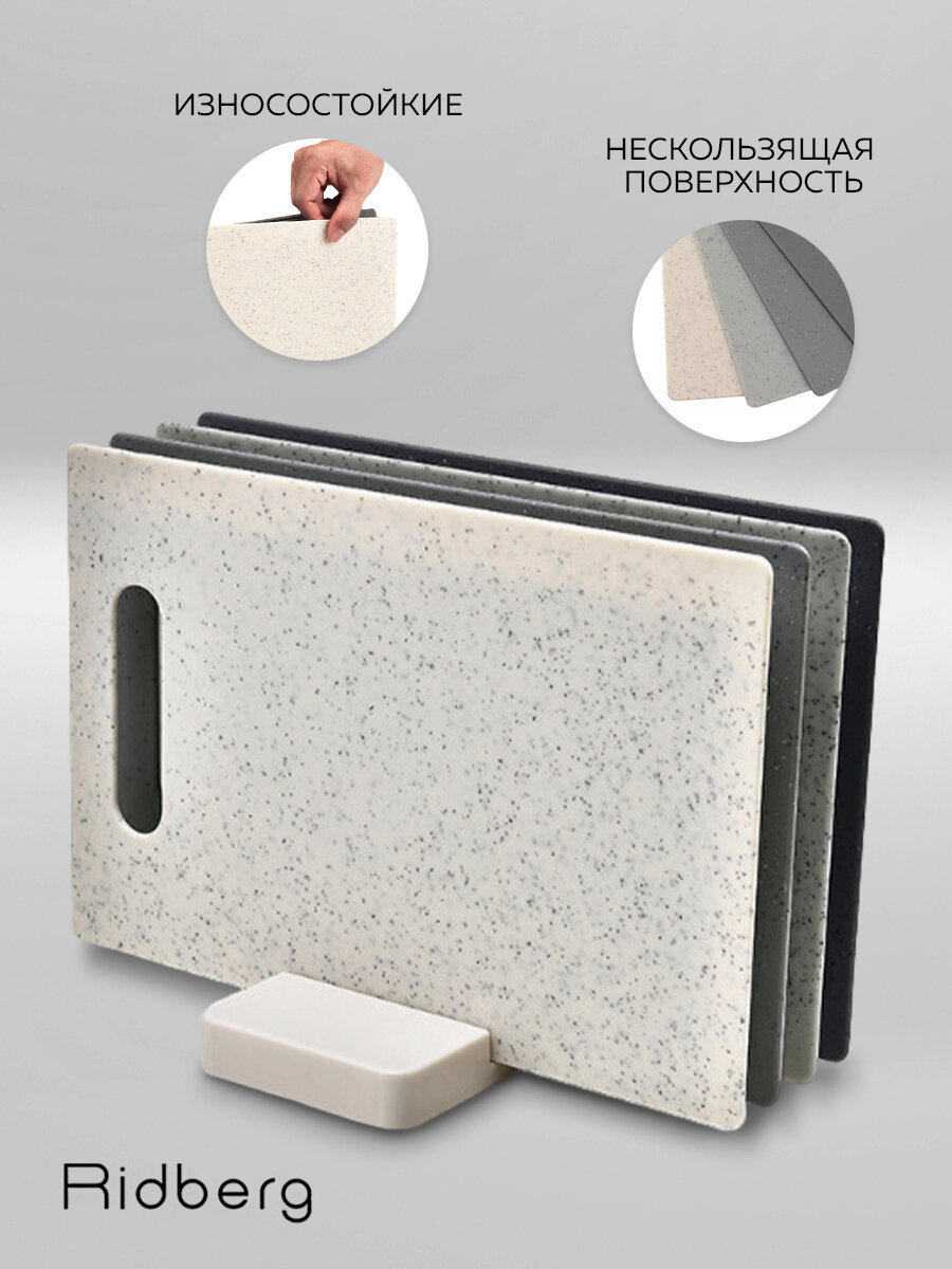 Доска разделочная пластиковая набор 4 шт Ridberg 28.3х18.5 см, с подставкой интересное: