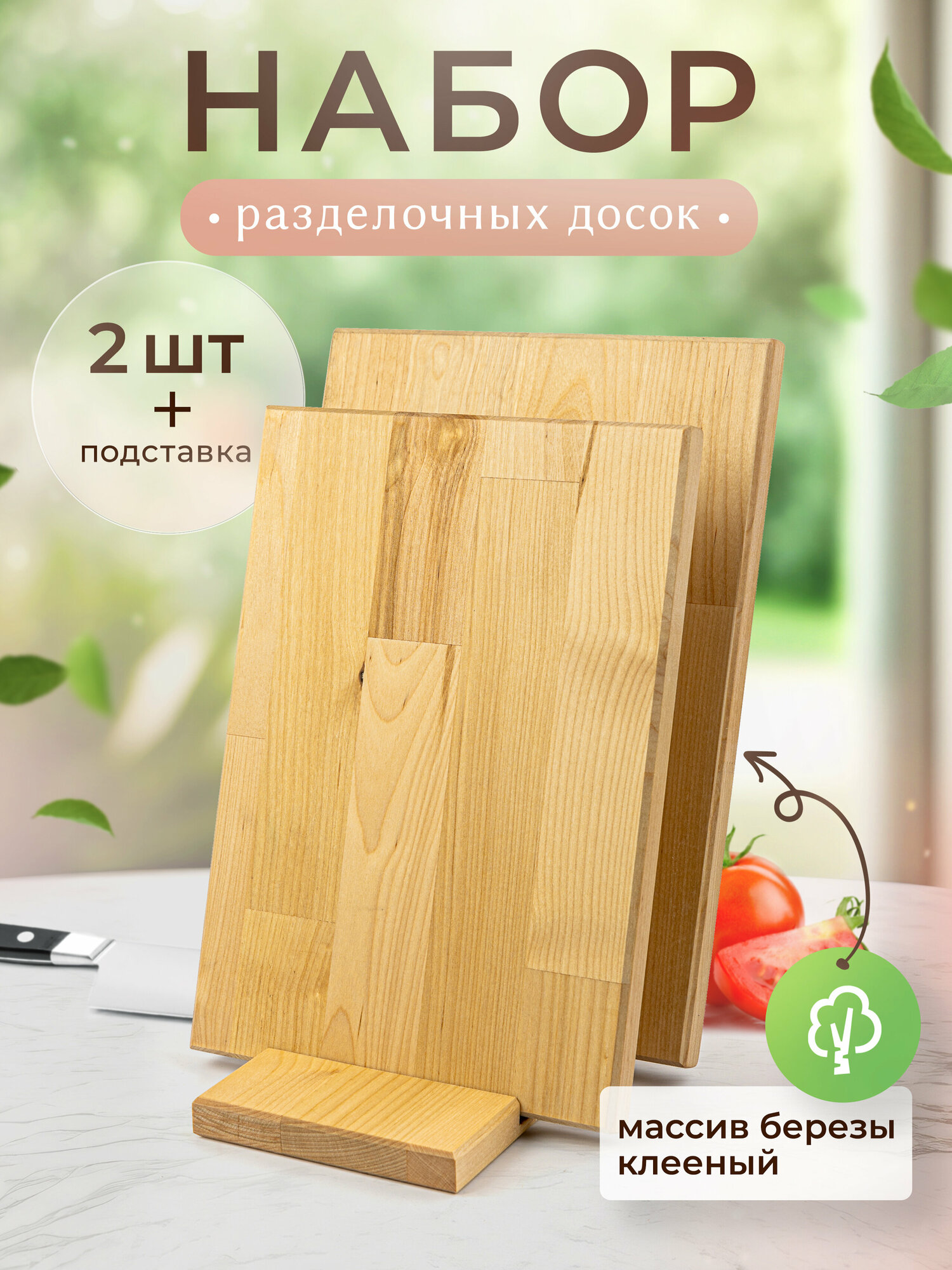 Набор деревянных разделочных досок на подставке 2 шт интересное: