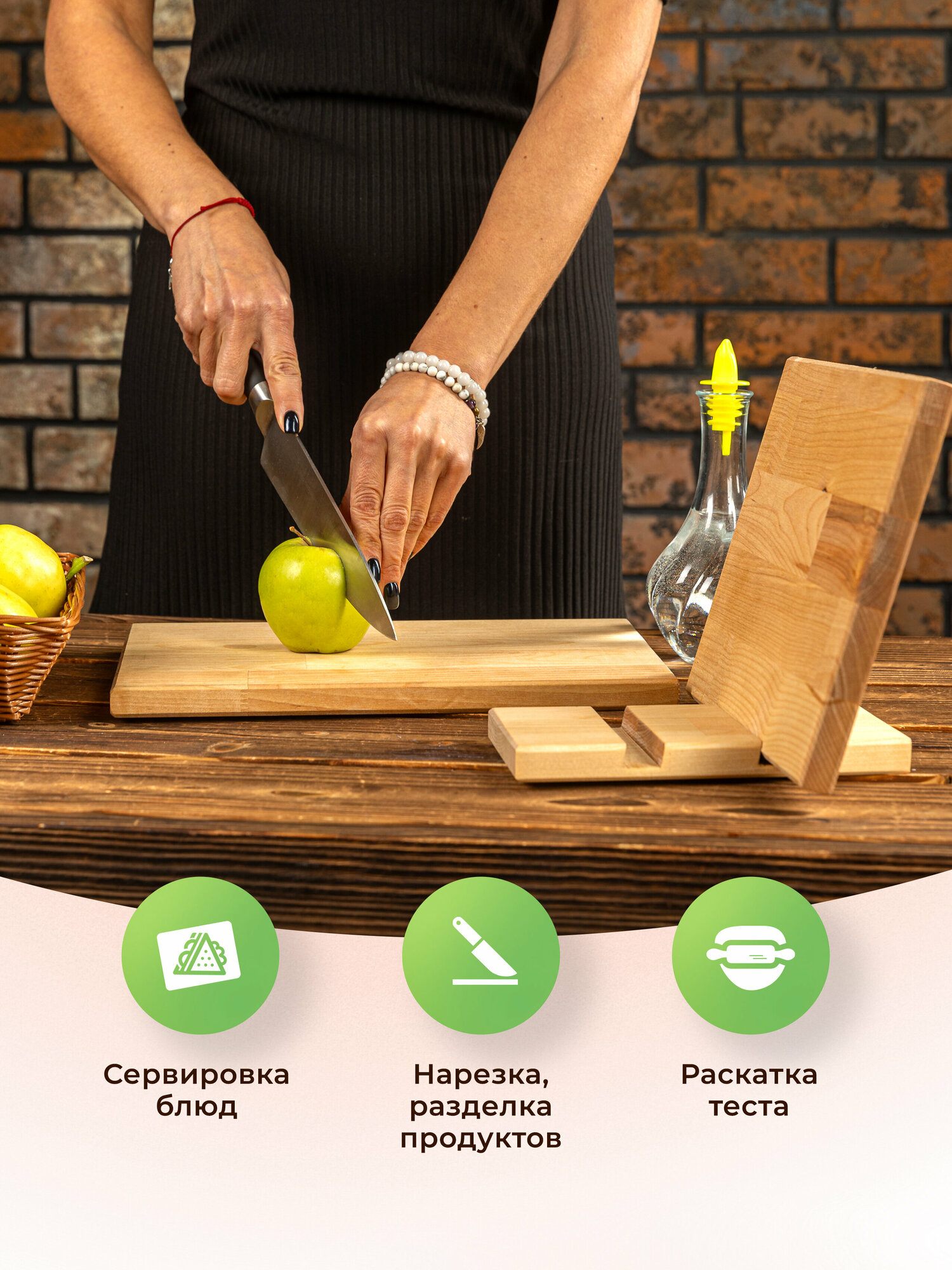 Доска разделочная деревянная для кухни набор + подставка, Набор 2 в 1