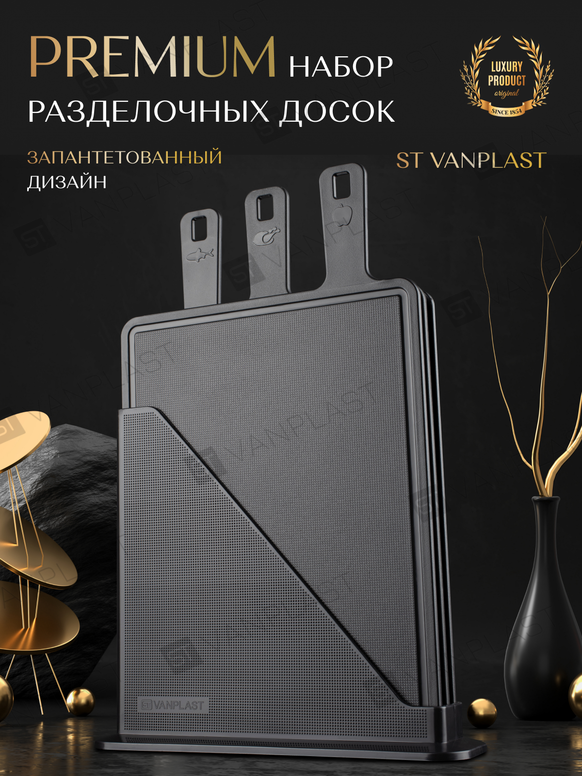 Набор разделочных досок ST VANPLAST 30х20 см, 3 шт на подставке интересное: