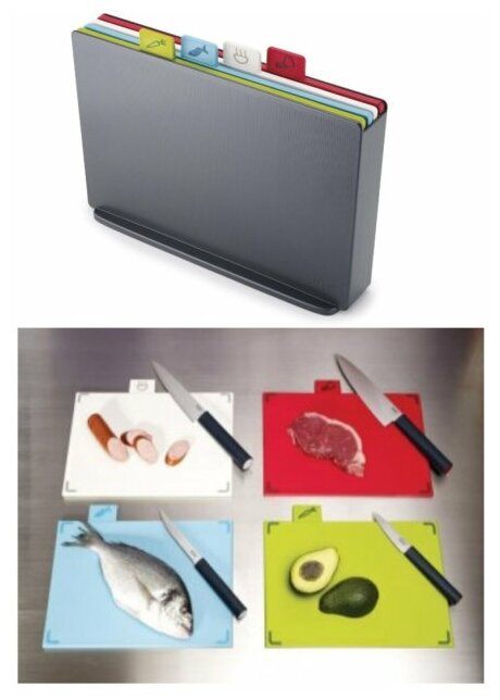 | Подробная комплектация | подставка,4 разделочные доски:для мяса,для рыбы,для овощей и фруктов,для хлебобулочных изделий |