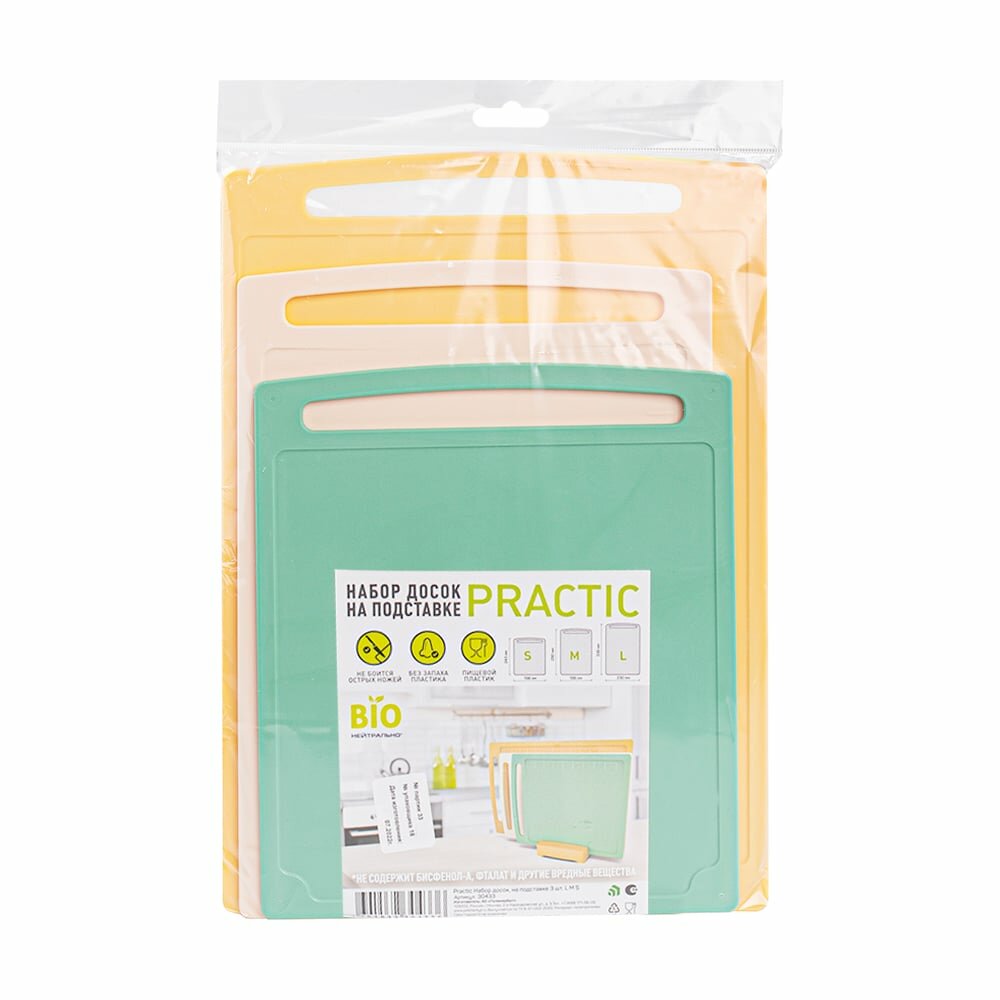 Набор разделочных досок Полимербыт Practic L+M+S 30433, на подставке, пластик, 3 шт.