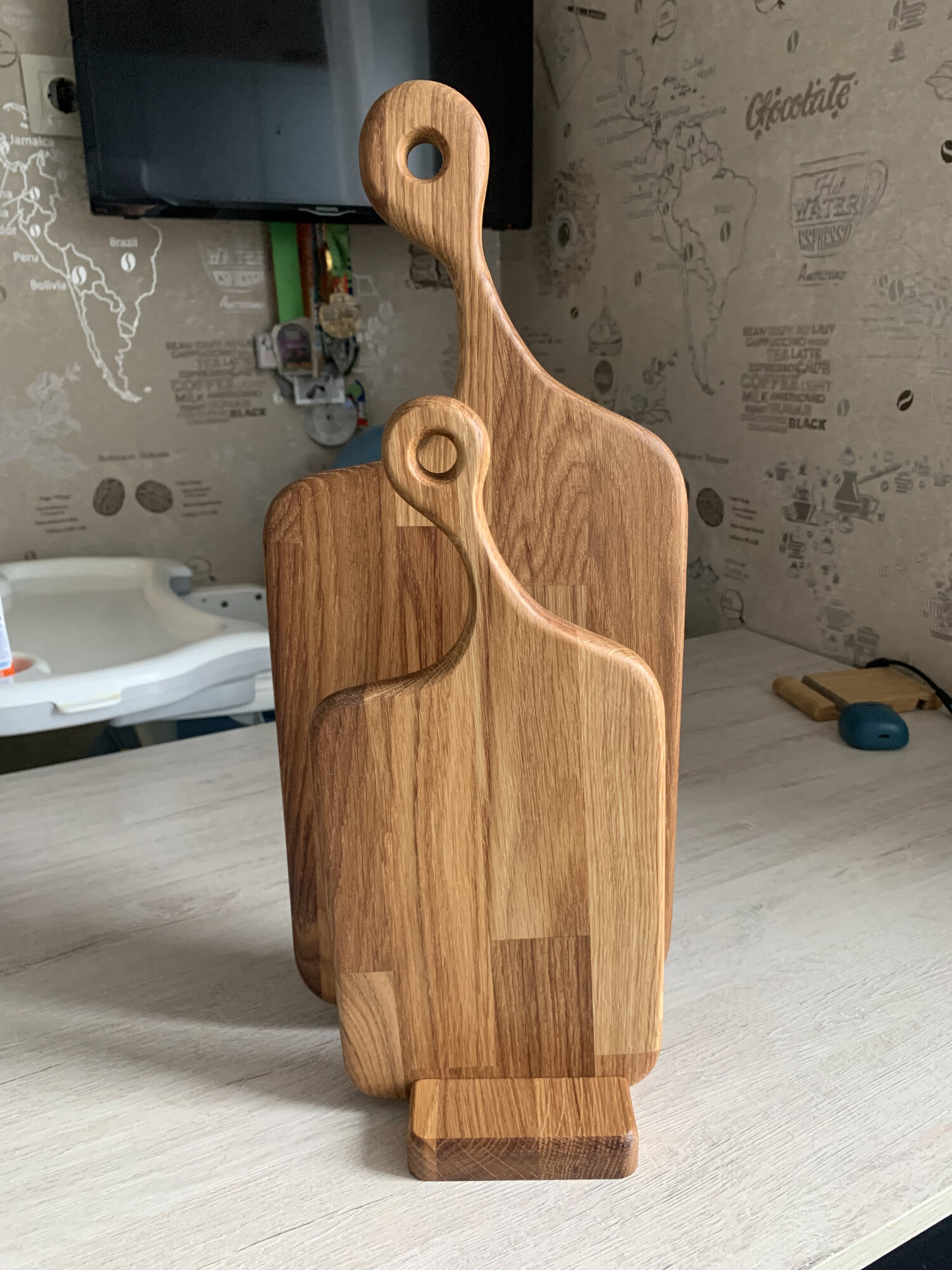 Набор разделочных досок деревянных из натурального дуба 2 шт. + подставка интересное: