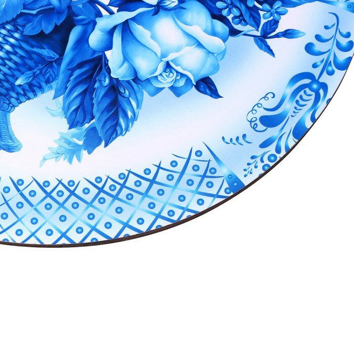 Купить Доска разделочная и сервировочная круглая кухонная "Гжельская роспись", 25,5 см