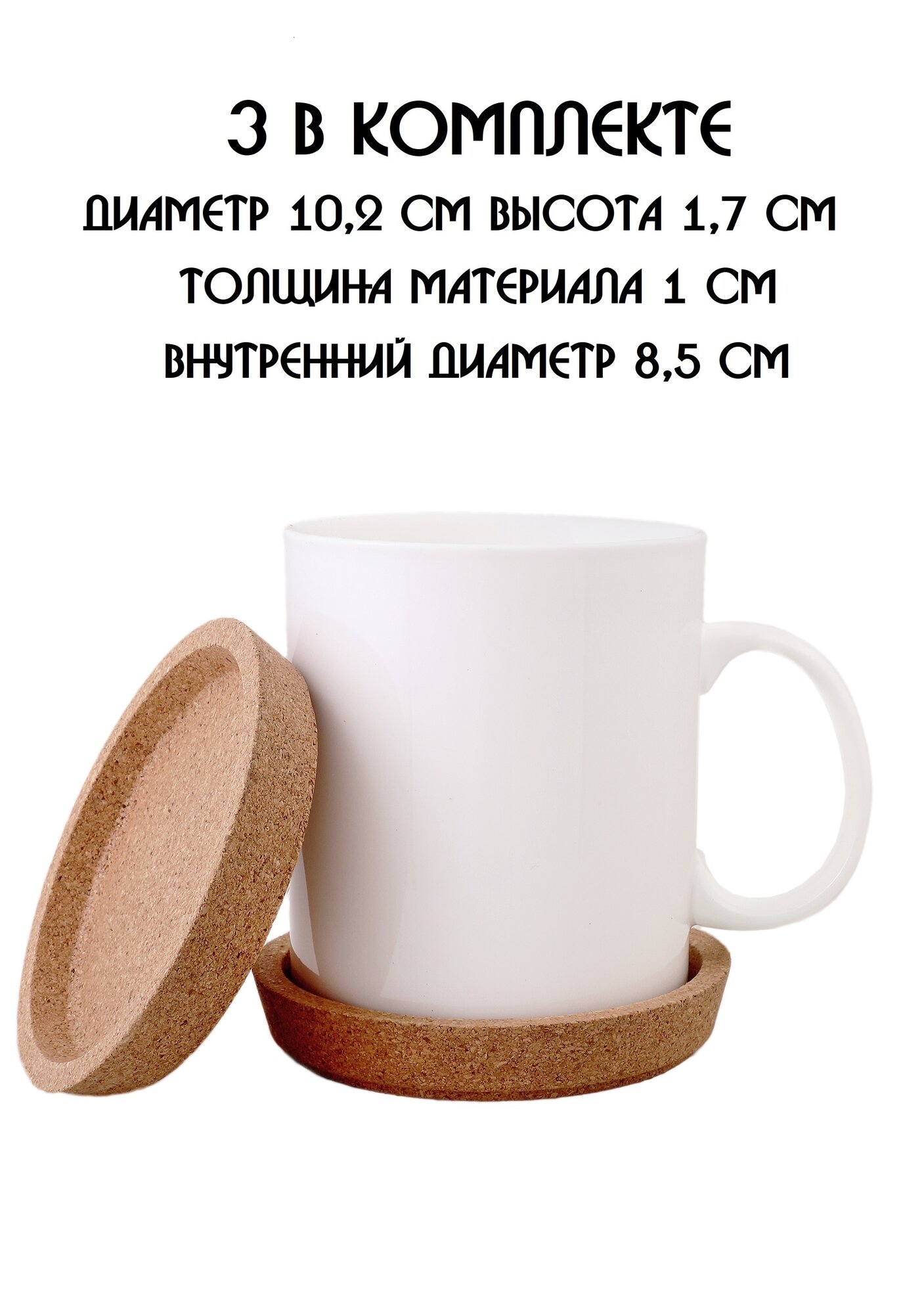 | Дополнительная информация | Подставки под кружку, подставки под стакан, подставки под чашку, под бокал, под горячее, бирдекель из натуральной пробки |