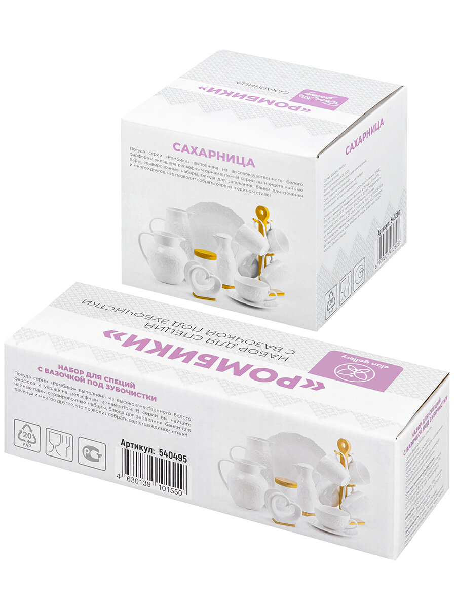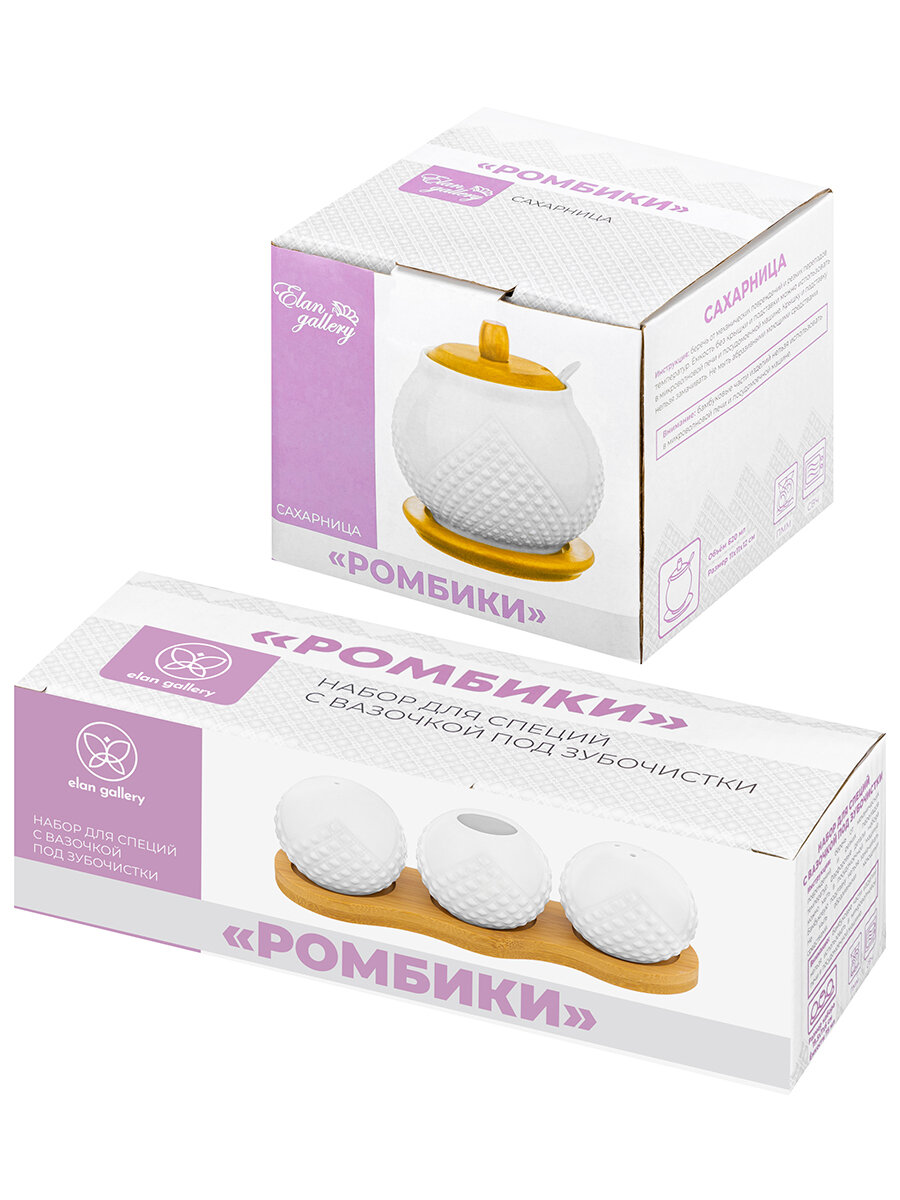 Купить Набор 4 предмета - Сахарница 620 мл с ложкой Elan Gallery Ромбики + вазочка под зубочистки +солонка + перечница