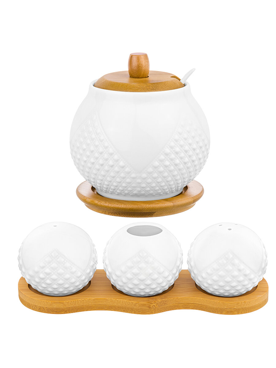| Комплектация | сахарница, ложка, деревянная крышка, вазочка под зубочистки, солонка, перечница, деревянная подставка 2 шт. |