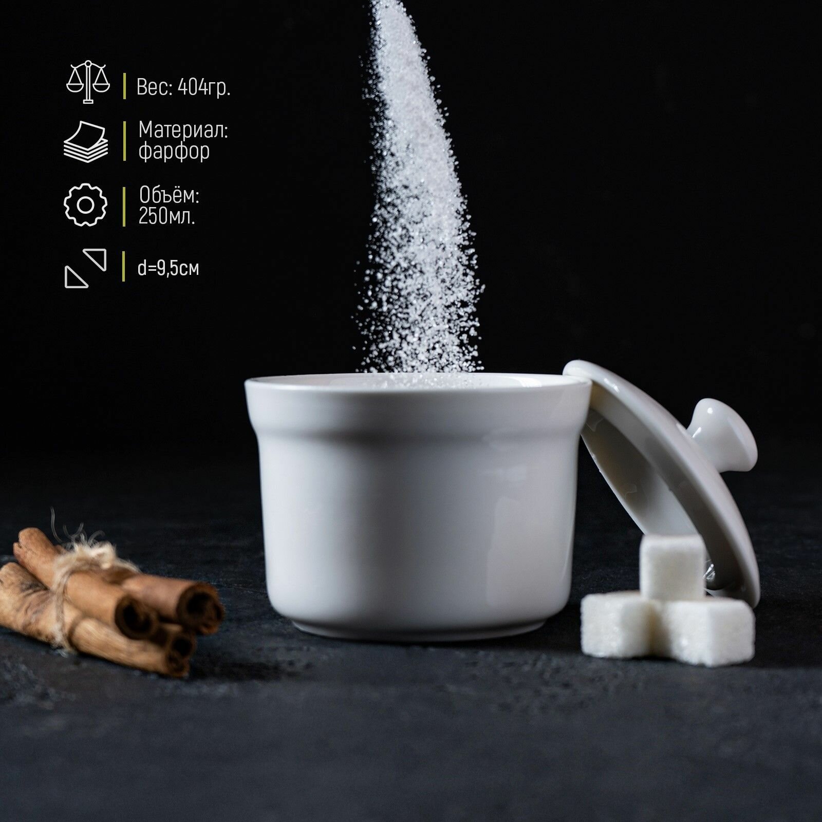 Сахарница фарфоровая с крышкой Magistro «Бланш», 250 мл, цвет белый интересное: