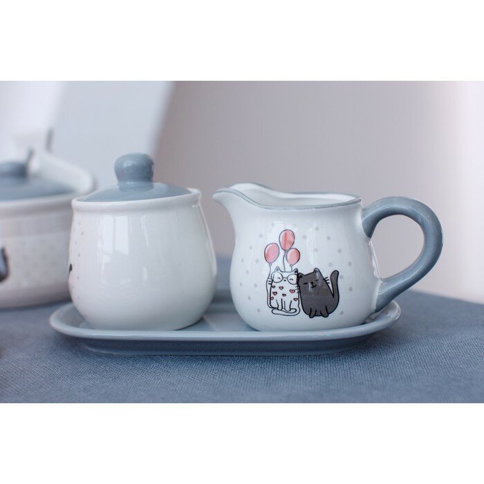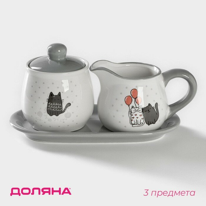 Купить Набор сервировочный Доляна «Уютные коты», 2 предмета: молочник 270 мл, сахарница 310 мл