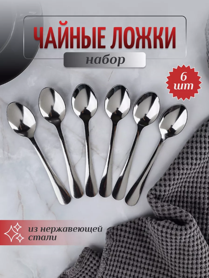 Набор чайных ложек из нержавеющей стали, 6 штук. интересное: