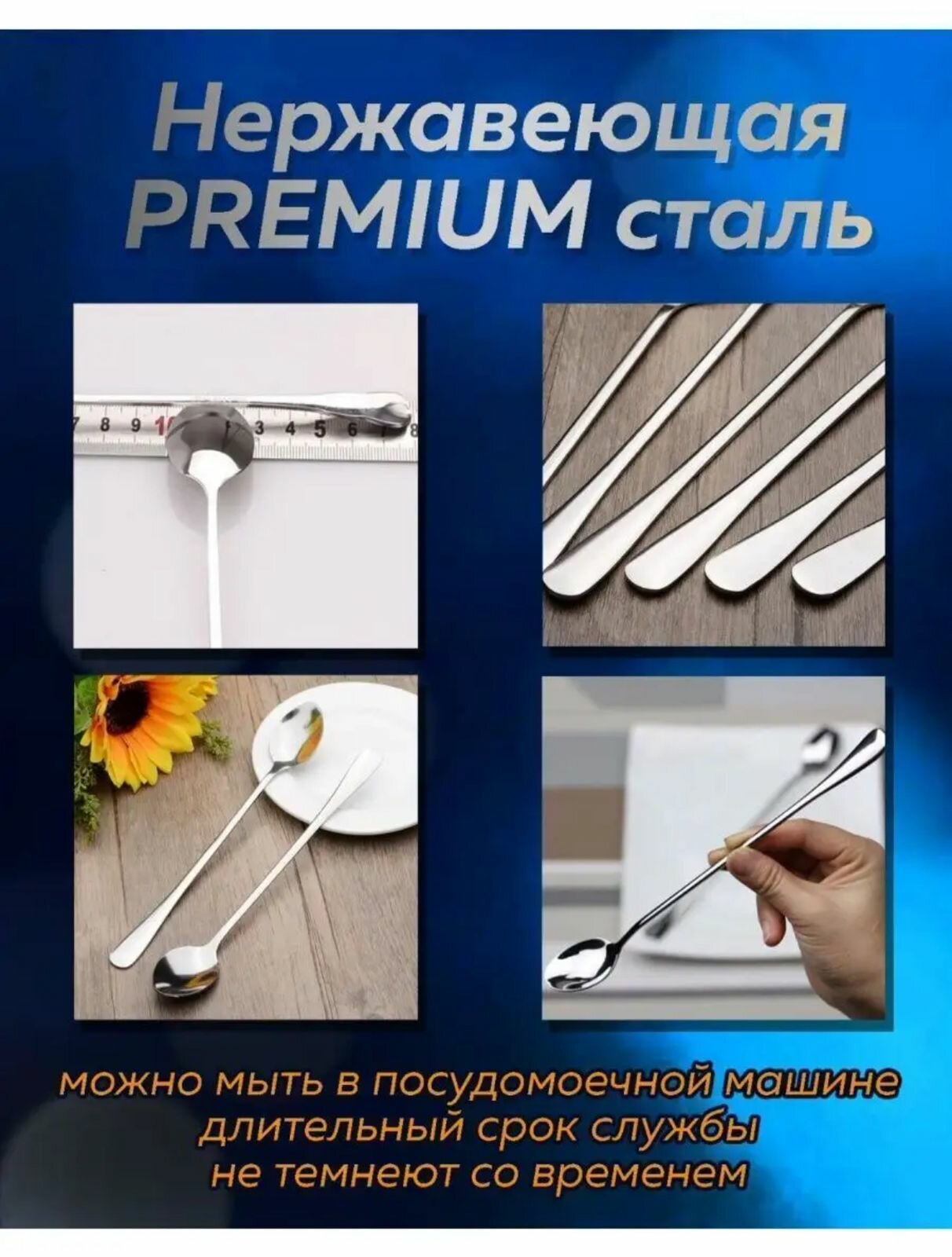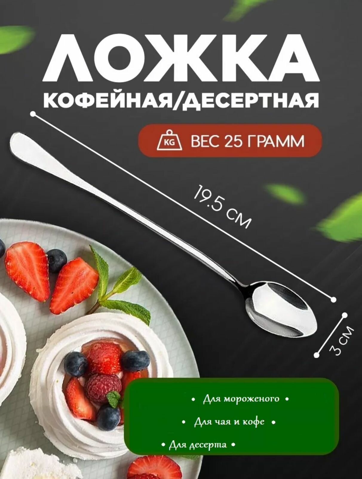 | Дополнительная информация | Барные ложки отлично подойдут для десерта, высоких стаканов, мороженного и пр. Также десертные ложки удобны для вылавливания ягод из узких стаканов или мёда из банки |