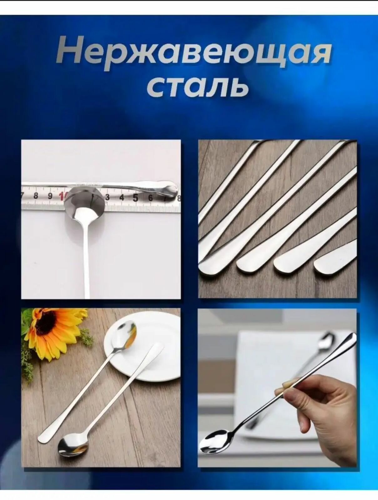 Ложка чайная с длинной ручкой , кофейная , десертная , коктейльная , набор ложек 6 шт , для , турки интересное:
